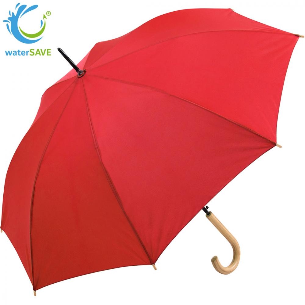 Komfortable Automatik-Funktion zum schnellen Öffnen, Windproof-Features für höhere Gestell-Flexibilität und bessere Windsicherheit, flexible Fiberglasschienen, wassersparend gefärbtes Polyester-Pongee waterSAVE® Bezugsmaterial aus recycelten Kunststoffen, Echtholzspitzen, Rundhakengriff aus Echtholz, höherer Korrosionsschutz durch schwarze Galvanisierung des Stahlstocks