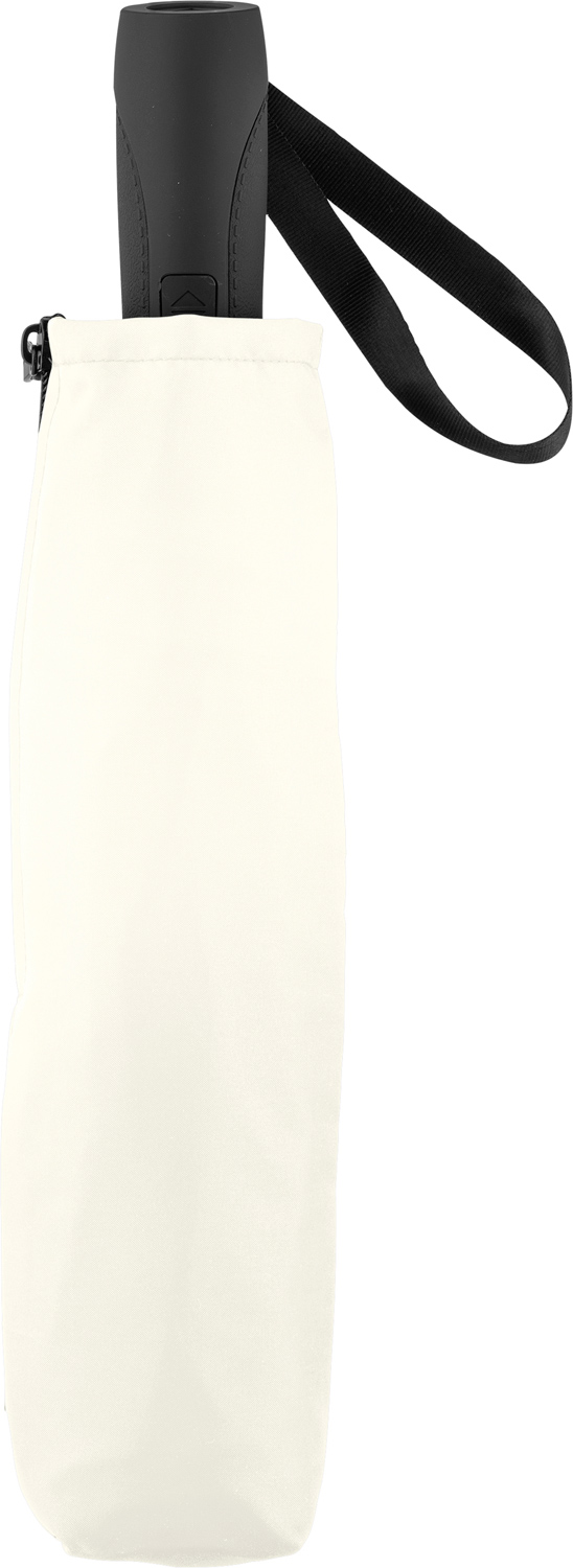 Äußerst stabiler Doppelautomatik-Taschenschirm in Übergröße. Komfortable Doppelautomatik-Funktion zum schnellen Öffnen und Schließen, hochwertiges Windproof-PLUS-System für eine maximale Gestell-Flexibilität bei stärkeren Windböen, flexible Fiberglasschienen, überlappender Ventilationsbezug zur Regulierung von Überdruck durch stärkere Windböen, wassersparend gefärbtes Polyester-Pongee waterSAVE® Bezugsmaterial aus recycelten Kunststoffen und mit modischer Reflexpaspel in Silber, mit waterSAVE®-Label auf dem Schließband, Griff aus recyceltem ABS mit integrierter Auslösetaste und Werbeanbringungsmöglichkeit, komfortables Futteral mit hochwertigem Zipper