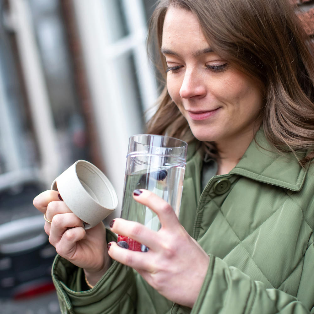 BUDDY DRINK ist wunderbar handlich, sehr robust und angenehm leicht: der perfekte Begleiter für den Tag. Die Flasche hat kein Mundstück, sondern eine angenehm große Öffnung. Das ist besonders praktisch für alle, die gerne Lippenstift tragen, denn so hinterlässt man beim Trinken keinen Abdruck. Die zweiteilige Flasche kann komplett zerlegt und hygienisch in der Spülmaschine gereinigt werden. BUDDY ist immer wieder befüllbar, spart so jede Menge Einwegflaschen und die Umwelt freut sich.