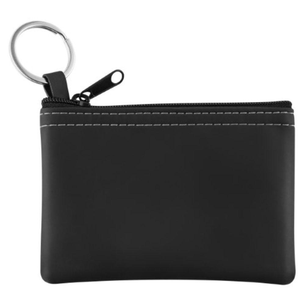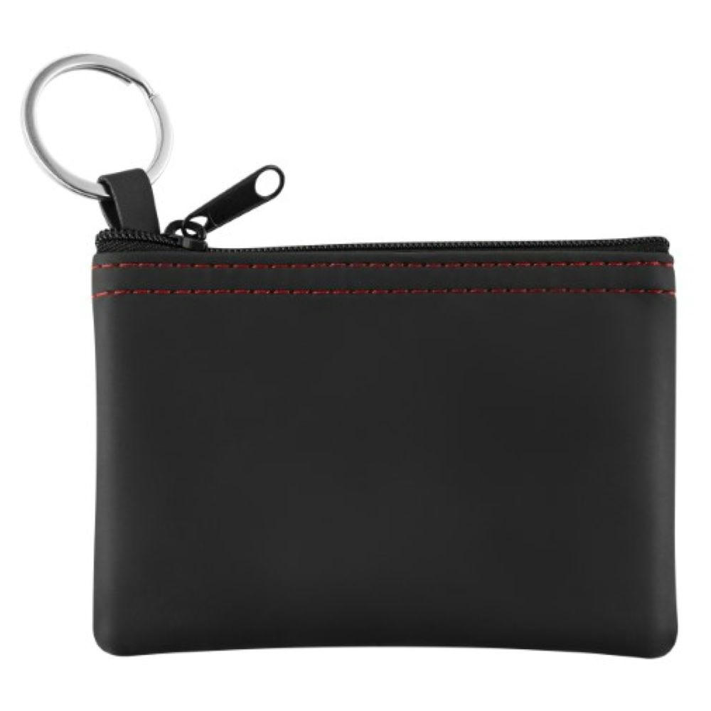 Hochwertige vegane Kunstlederschlüsseltasche mit Soft Touch Haptik, kontrastierender Ziernaht und exzellenter Prägefähigkeit. Ausst: 30 mm Federstahlring, Nylonreißverschluss, Kreditkartengröße (ideal für E Mobility Ladekarte)