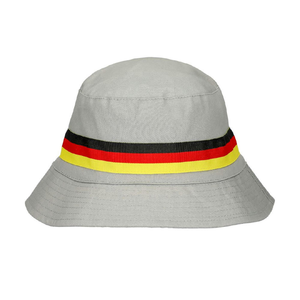 Der graue Bucket hat "Germany" vereint Design und Funktionalität. Ein Band in den deutschen Flaggenfarben ziert sich um den Hut. Der Wendehut ist perfekt für sportliche Großereignisse geeignet. Auch nach Weltmeisterschaften/Europameisterschaften ist er noch einsetzbar, da durch das Wenden des Hutes das Germany-Band nicht mehr sichtbar ist. Ein echter Allrounder! Der Hut ist hergestellt aus 100% Baumwolle bietet er Tragekomfort und setzt gleichzeitig ein modisches Statement.