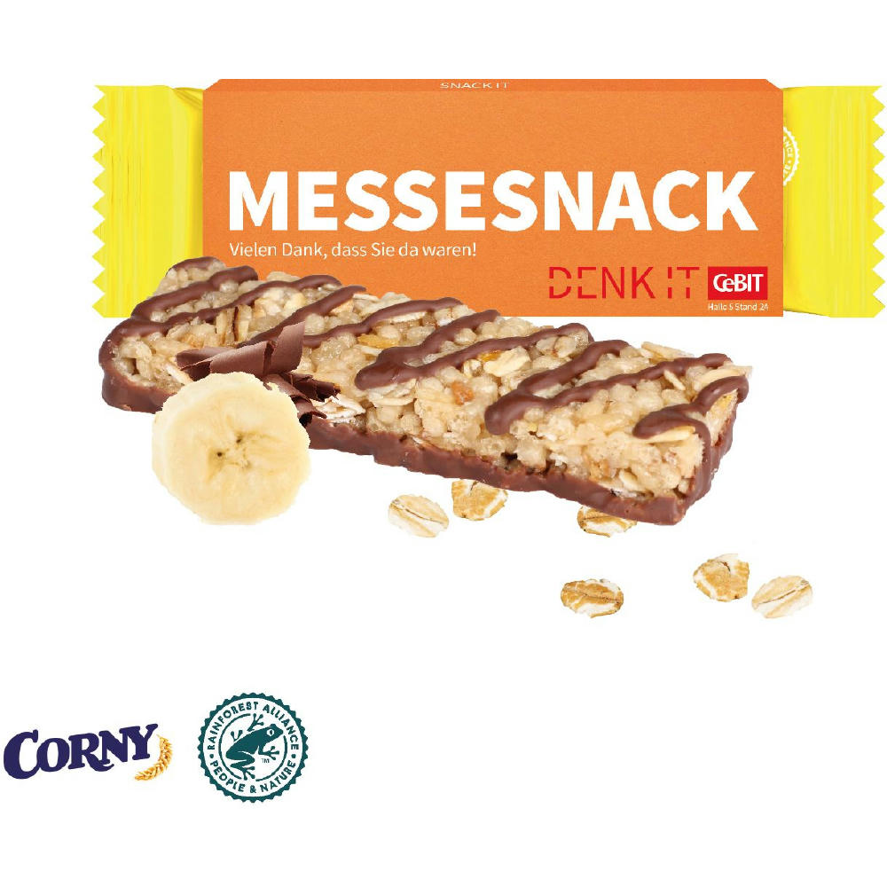 Inhalt: 1 Riegel (ca. 25 g) von CORNY Schoko oder Schoko-Banane. Verpackt in individuell bedruckbarem Werbeschuber. Inkl. 4c-Druck. Für jede Bestellung wird ein Baum über GROW MY TREE gepflanzt.