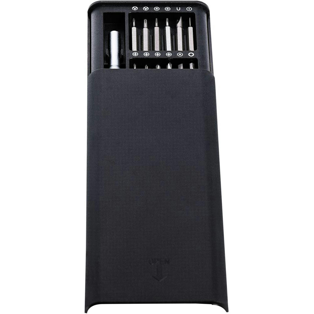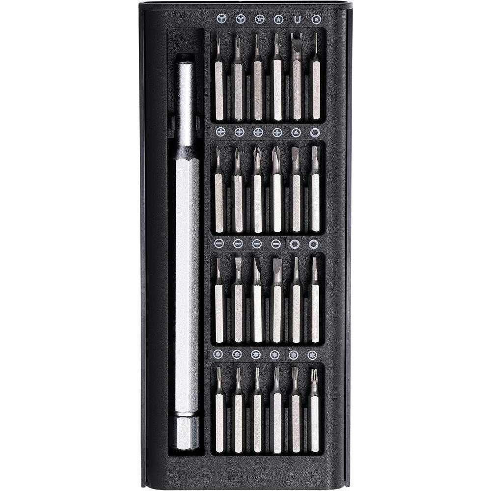 Gehen Sie den Dingen gerne auf den Grund und schauen Sie hinter die Fassade? Dieses Universalschraubset mit Feinwerkzeugschraubaufsätzen macht’s möglich! - Kunstofffbox mit Schiebedeckel - Präzisionsschraubendreheraufnahme mit drehbarer Endkappe - und 24 Bits. - Maße 70 x 158 x 17 mm - Material: Aluminium, ABS, Stahl - Gewicht: 159 g - Plastikfreie Einzelverpackung - - Werbeanbringung: - Auf der Außenhülle, 50 x 30 mm (D2); - Auf der Außenhülle, 70 x 40 mm (D3); - - Dieses Produkt unterstützt aktiv den Ausgleich der entstehenden CO2-Emissionen durch zertifizierte Klimaschutzprojekte.