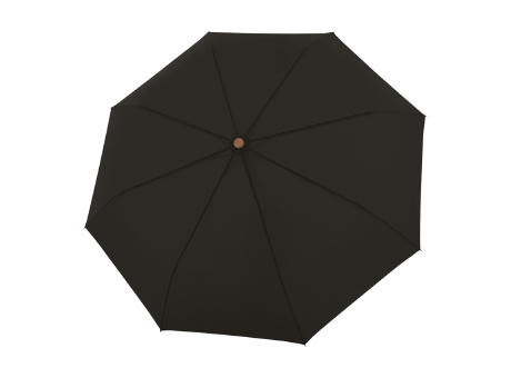 Nachhaltiger, PFC-freier, manueller Taschenschirm mit rPET-Bespannung und einem zertifiziertem Holzgriff aus nachhaltiger Forstwirtschaft, zu attraktiven Konditionen.
