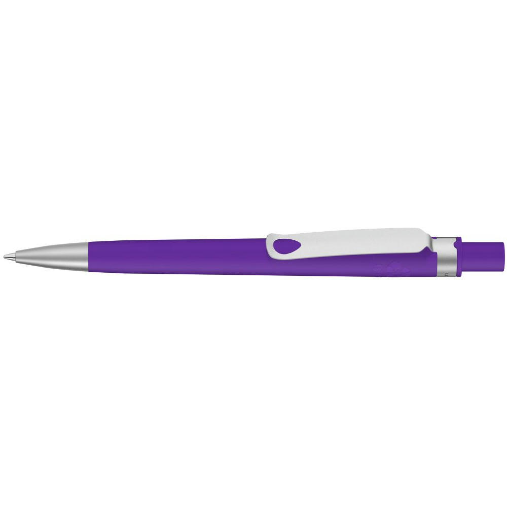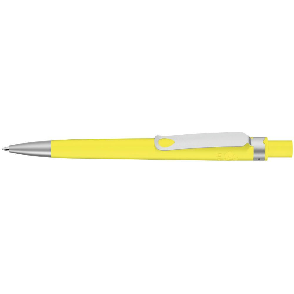 Druckkugelschreiber aus recyceltem PET-Material mit matt gedecktem Gehäuse. Metallclip und Metallspitze matt verchromt.
