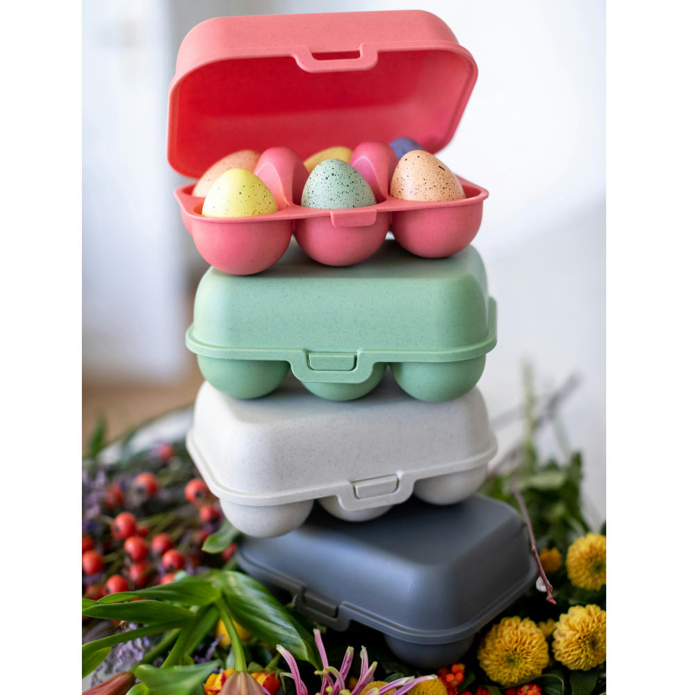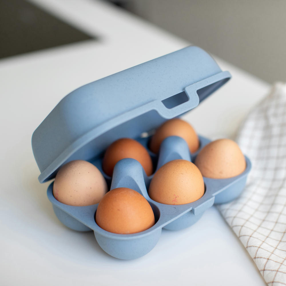 EGGS TO GO ist perfekt zum Einkaufen auf dem Markt oder im nächsten Hofladen. Die Box transportiert bis zu sechs Eier sicher nach Hause und spart dazu jede Menge Einwegverpackungen. Sie hat einen praktischen Clipverschluss zum einfachen Öffnen und Schließen und das stoßfeste Material verhindert zuverlässig, dass die Eier beschädigt oder zerdrückt werden. Im Kühlschrank können die Boxen problemlos gestapelt werden, so bleibt mehr Stauraum für weitere Lebensmittel.