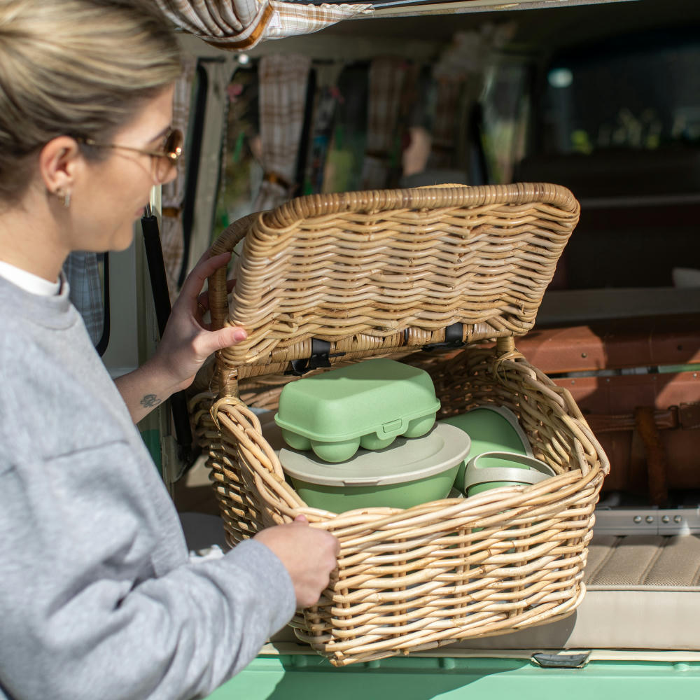 EGGS TO GO ist perfekt zum Einkaufen auf dem Markt oder im nächsten Hofladen. Die Box transportiert bis zu sechs Eier sicher nach Hause und spart dazu jede Menge Einwegverpackungen. Sie hat einen praktischen Clipverschluss zum einfachen Öffnen und Schließen und das stoßfeste Material verhindert zuverlässig, dass die Eier beschädigt oder zerdrückt werden. Im Kühlschrank können die Boxen problemlos gestapelt werden, so bleibt mehr Stauraum für weitere Lebensmittel.