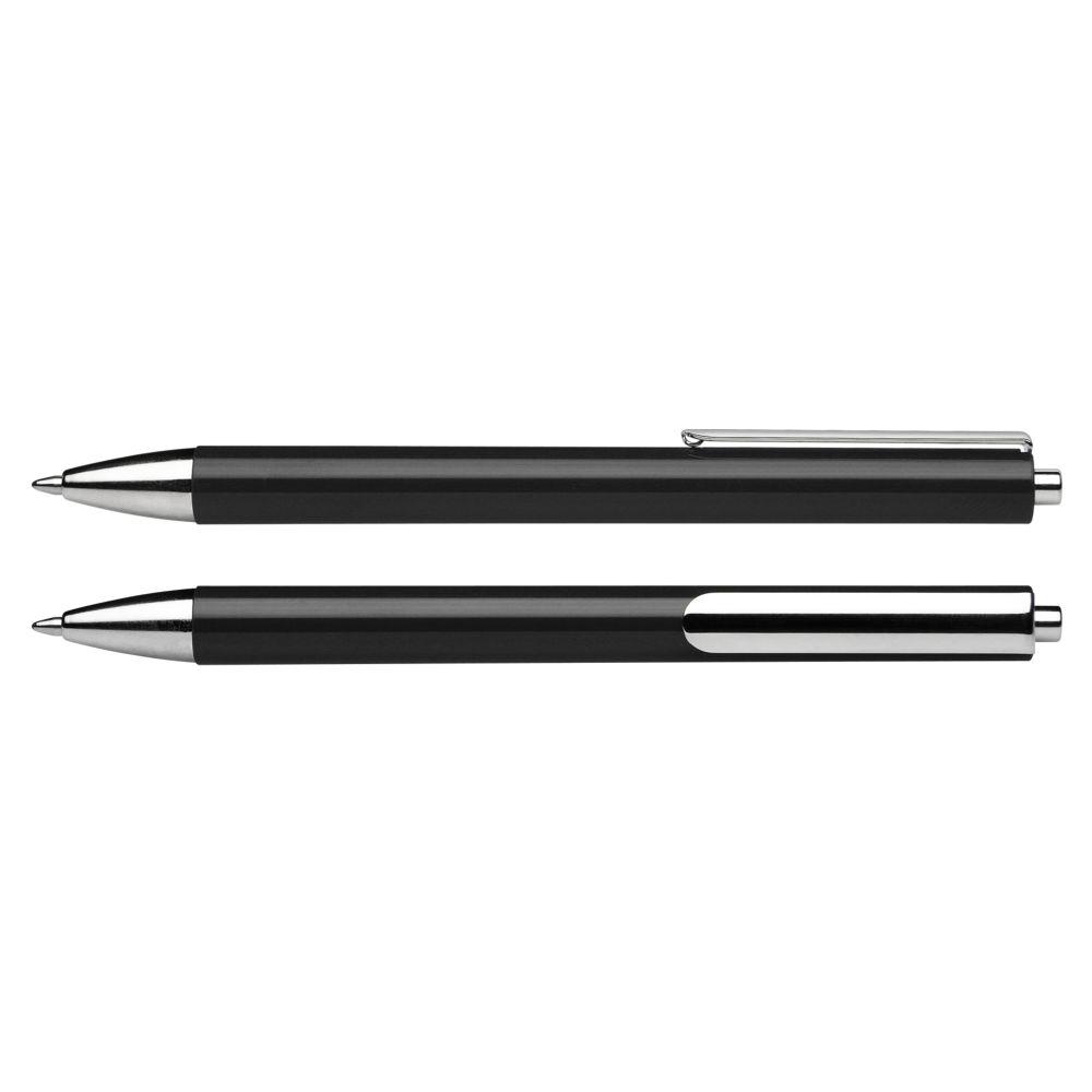 Druckkugelschreiber aus opakem Kunststoff mit glänzender Oberfläche. *Gehäuse zu > 90 % aus Recycling-Kunststoff. Gehäusespitze, Clip und Druckknopf aus Metall. Ausgestattet mit Schneider-Mine 774 M. Produkt mit finanziellem Klimabeitrag: Kompensation in Höhe der unvermeidbaren Emissionen in ein zertifiziertes Klimaschutzprojekt. Gehäuse: schwarz. Schreibfarbe: schwarz.