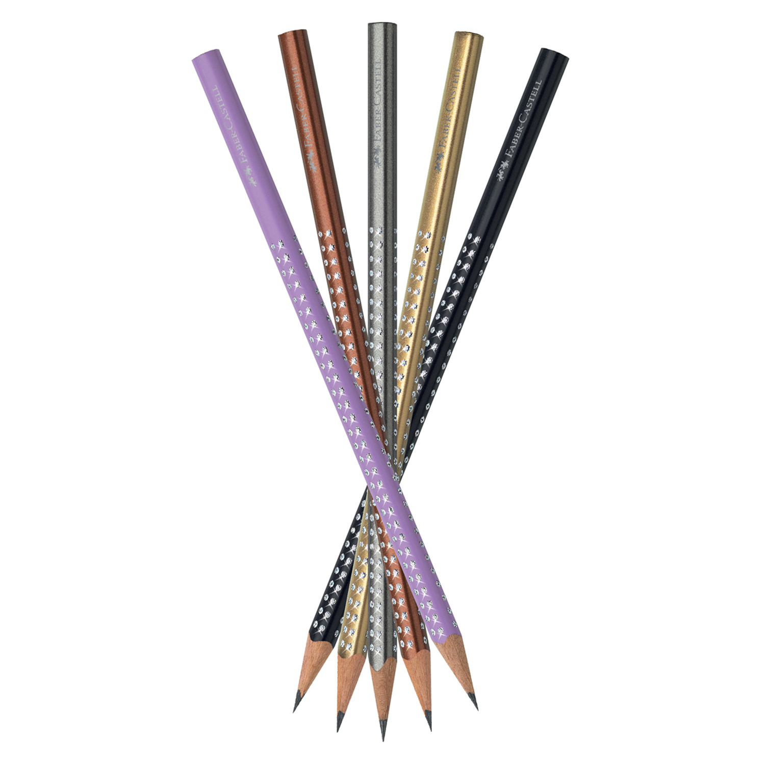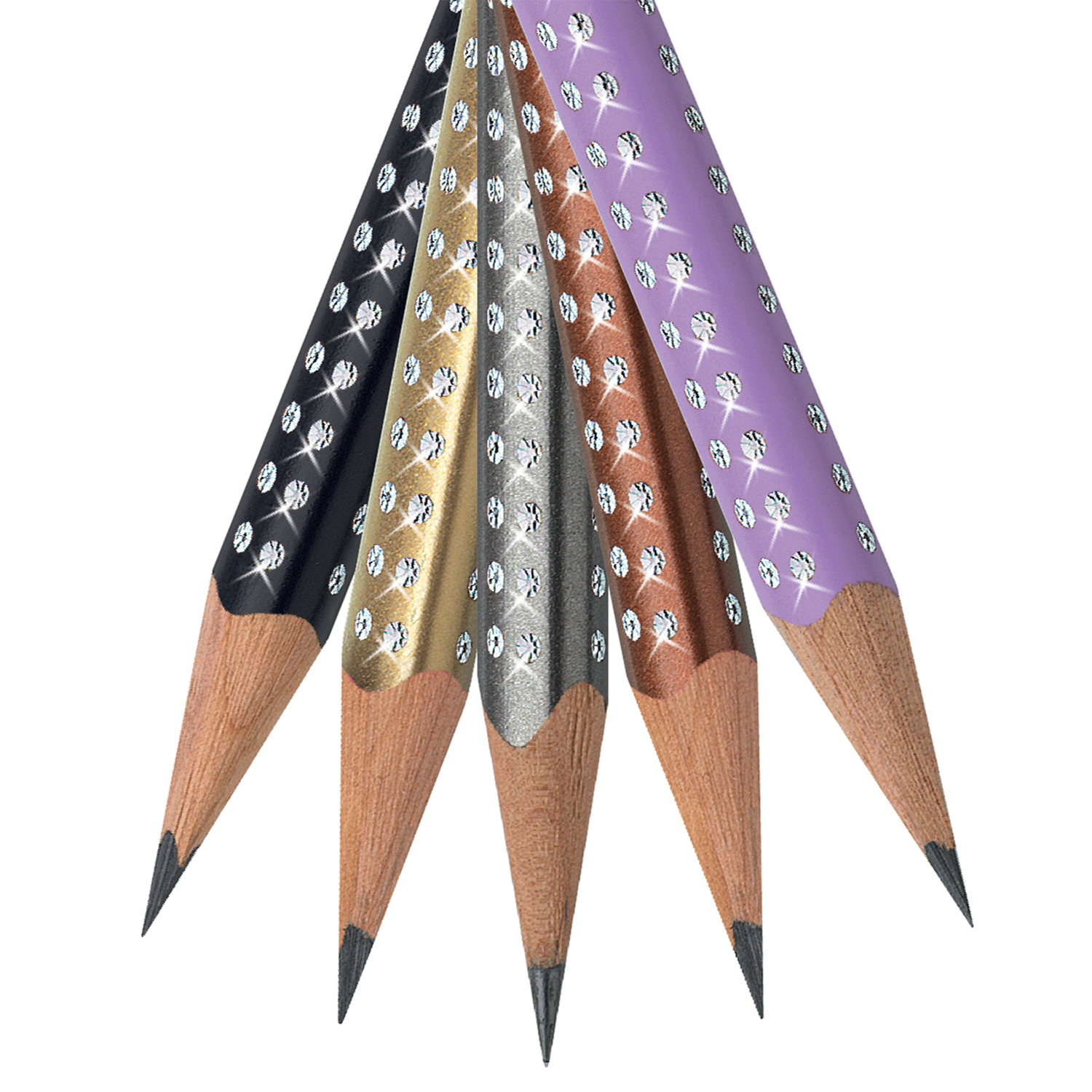 4 Bleistifte mit Glitzereffekt nach Wahl im Blechetui. Material: Metall, Holz. Farben saisonal wechselnd. Maße: 18,3 x 5,4 x 1,1 cm (Etui).