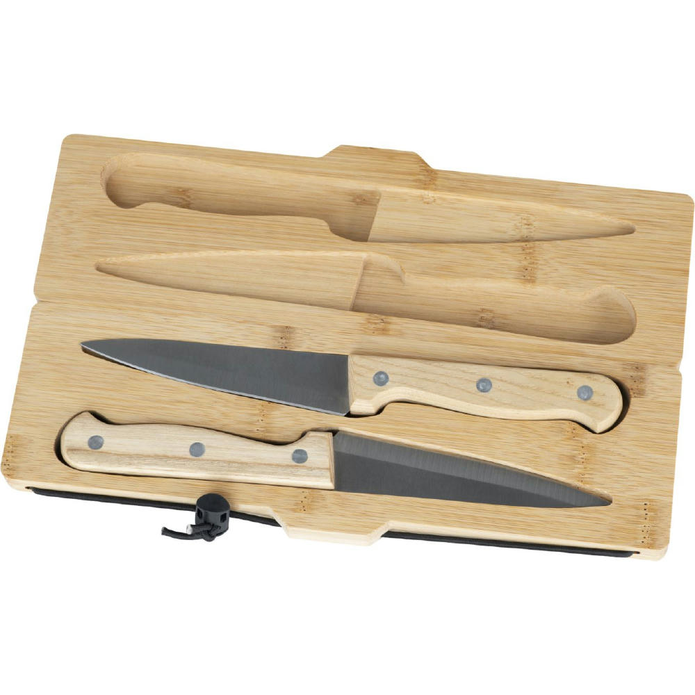 Material: naturbelassenes Bambus, Edelstahl. Maße: 29 x 9,3 x 3,1 cm (geschlossen), 29 x 18,6 x 1,55 cm (geöffnet).