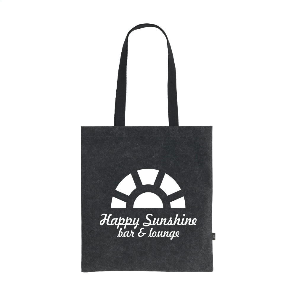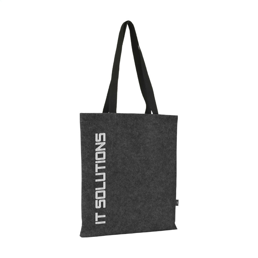 Robuster Shopper aus dickem RPET Qualitätsfilz mit langen, gewebten Baumwollgriffen. GRS-zertifiziert. Gesamtes recyceltes Material: 75%. Fassungsvermögen ca. 11 Liter.