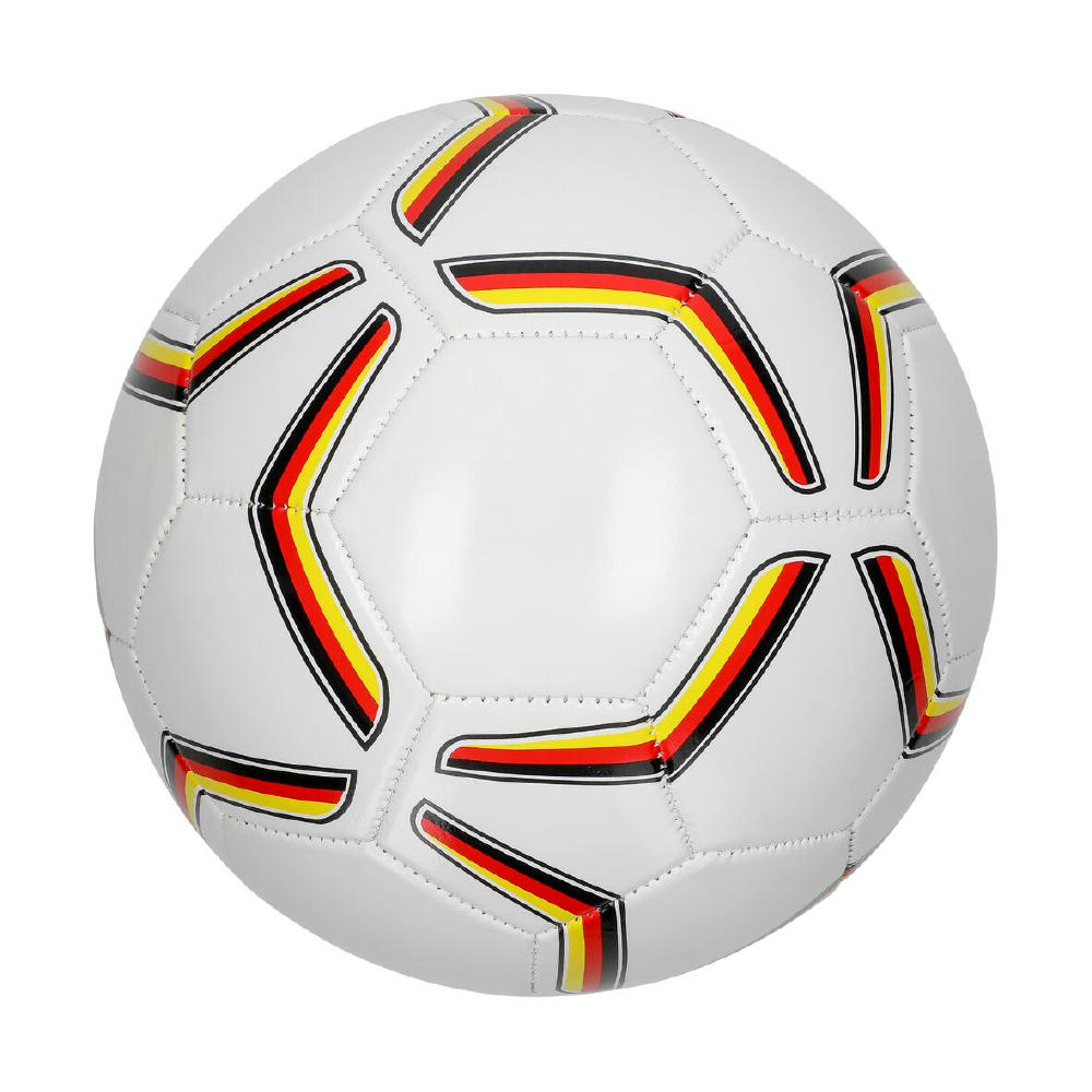 Der Fußball "Germany" in Größe 5 besticht durch sein sportliches Design in den Farben Weiß, Schwarz, Rot und Gelb – ideal für Fans. Gefertigt aus 1,6 mm starkem PVC, ist er maschinell genäht und bietet optimale Haltbarkeit. Ausgestattet mit einem robusten Butyl-Ventil und einer Latexblase, sorgt er für hervorragenden Luftdruck und langlebige Spielfreude. Perfekt für alle, die Spaß am Spiel haben!