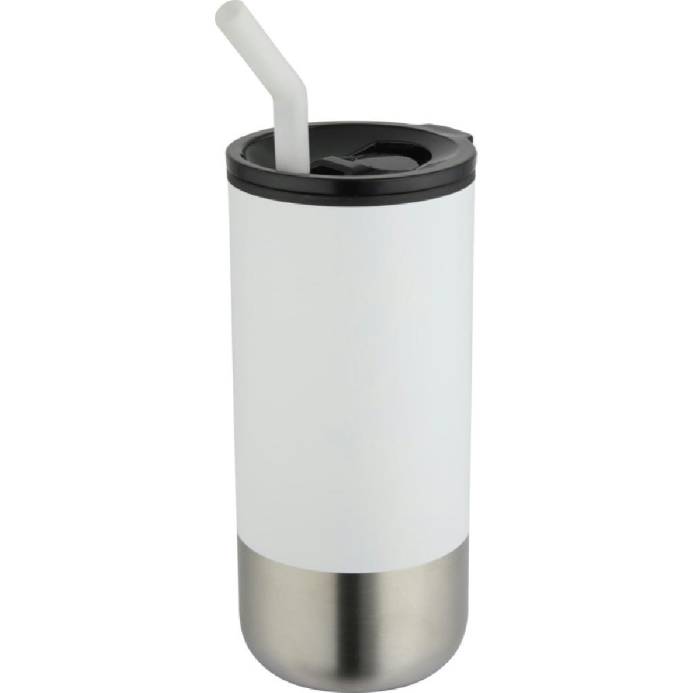 Dieser Becher zeichnet sich durch sein doppelwandiges, isoliertes Design aus und wird mit einem recycelten Trinkhalm aus Edelstahl mit Silikonspitze für einen komfortablen Gebrauch geliefert. Die Innenwand besteht aus PP Kunststoff, die Außenwand ist aus RCS zertifiziertem, recyceltem Edelstahl gefertigt. Ein Schiebedeckel aus PS- und ABS-Kunststoff mit matter Beschichtung verleiht dem Becher ein elegantes Finish. Fassungsvermögen: 480 ml.