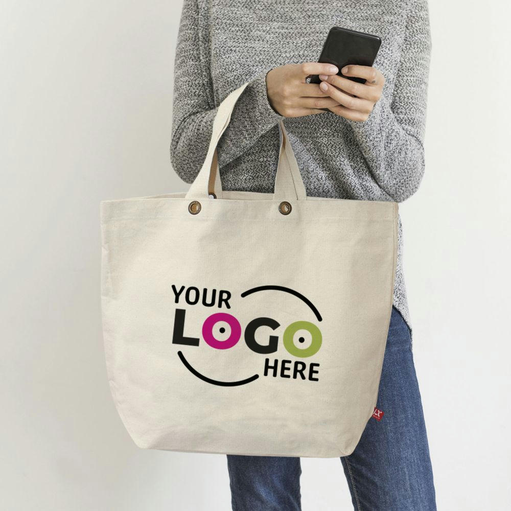 Big-Shopper aus OEKO-TEX® zertifizierter Baumwolle in strapazierfähiger Canvas-Qualität mit kurzen, gewebten Henkeln und Bodenfalte. Gegen Aufpreis auch mit langen Henkeln erhältlich.