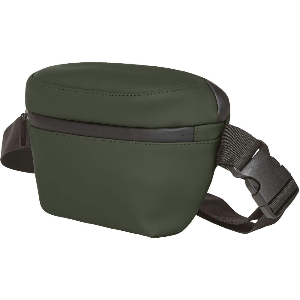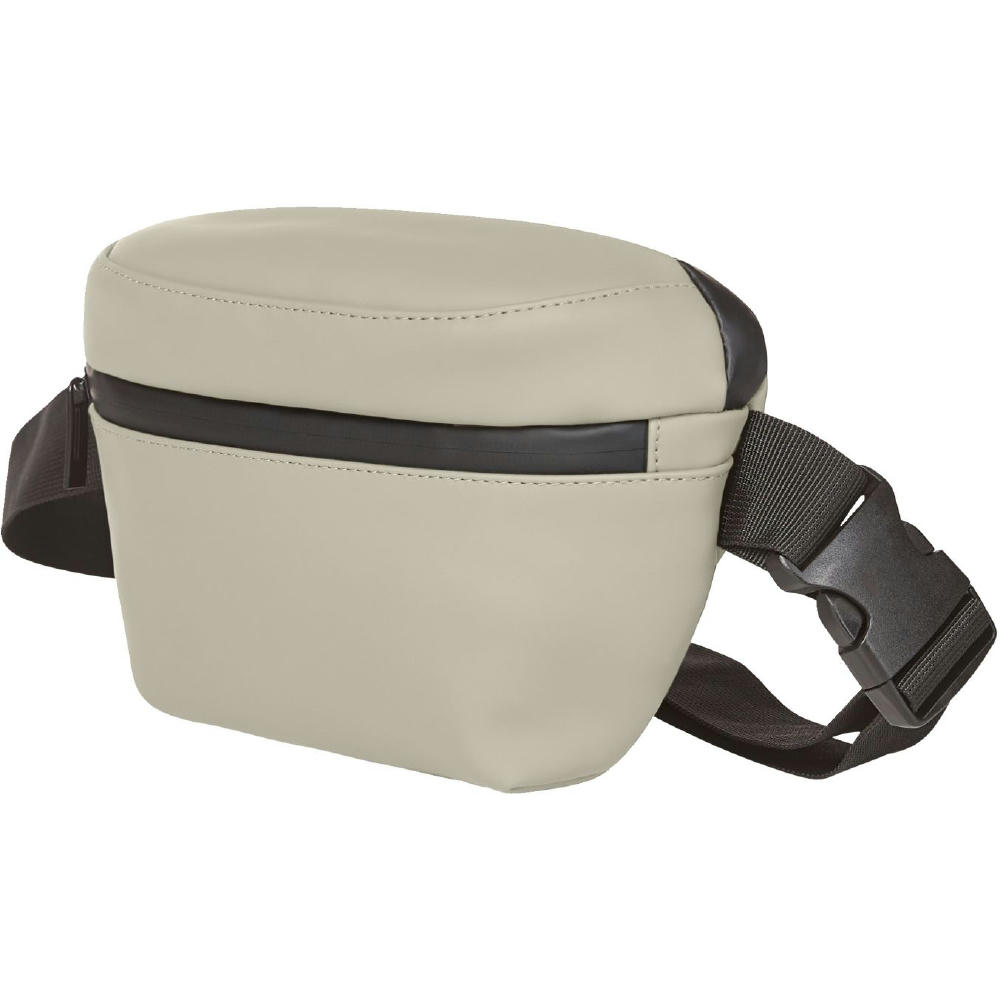 moderne Bauchtasche; Hauptfach mit 2-Wege-Reißverschluss und flachem Einsteckfach innen; wasserabweisende Reißverschlüsse; Reißverschluss-Vortasche; längenverstellbarer Gurt mit Gummilasche zur Gurtfixierung; als Hüft- oder Body-Bag tragbar; große Schnalle seitlich für komfortables Öffnen und Schließen