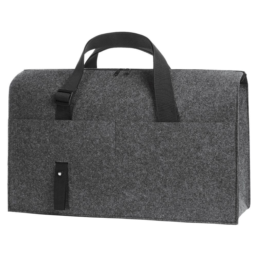 Großes 2-Wege-Reißverschluss Hauptfach; flaches Einsteckfach, großes Reißverschluss-Einsteckfach, zwei Fixierungsschlaufen z.B. für Getränkeflasche, Visitenkartenfach, drei Einsteckfächer innen; drei Einsteckfächer außen; längenverstellbare Tragegurte; Befestigungslasche z.B. für den Autogurt.