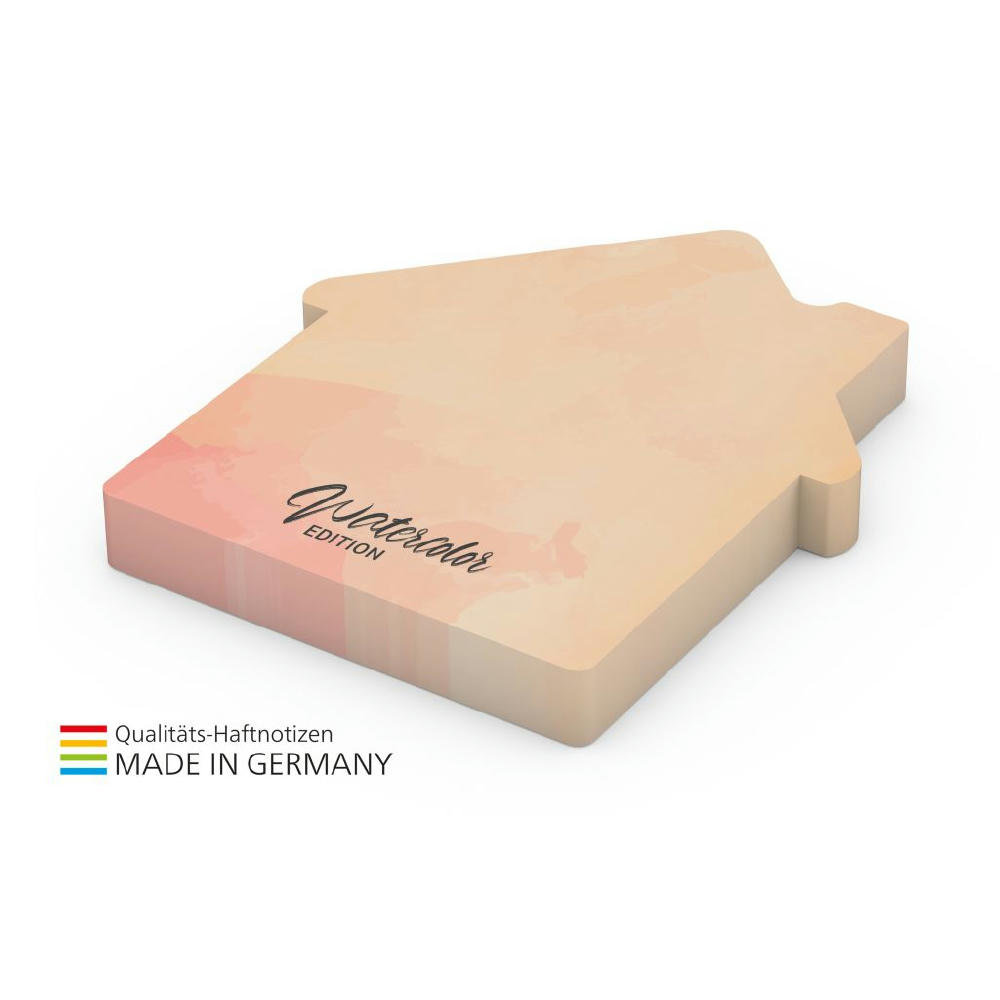 Egal, ob Transporter, Glühbirne oder Daumen-Hoch: Haftnotizblock Form in verschiedenen Formaten, mit wählbarer Formstanzung; 25, 50 oder 100 Blatt individuell bedruckbares Haftpapier – hergestellt aus 100 % Altpapier mit dem Umweltzeichen „Blauer Engel” – Werbeeindruck in 4C-Quality auf den Haftnotizen inklusive