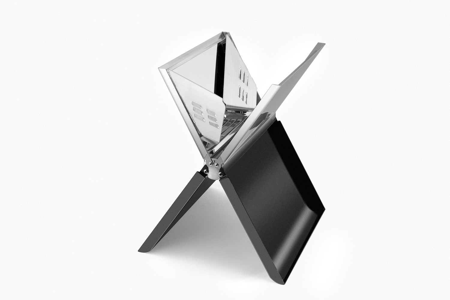 Unter den Arm klemmen, Freunde einpacken und ab ins Grüne! Aufbau in zehn Sekunden! Grillkörper aus hygienischem und hitzebeständigem Edelstahl, die beiden Deckelschalen aus matt pulverbeschichtetem Walzstahl (Maße: geöffnet 350 x 240 x 390 mm, Grillfläche: 230 x 345 mm).