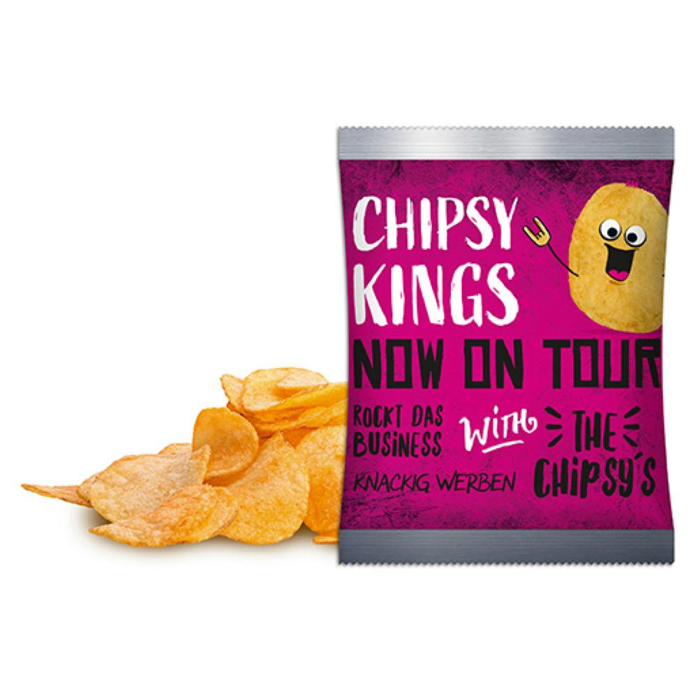 Kross und lecker, vom Feld in die Tüte. Die würzigen Jo Chips sind hochwertige Chips die direkt vom Landwirt hergestellt werden. Verpackt werden die Jo Chips im klassischen Werbetütchen mit individueller Veredelung. Variante : Jo Chips im Werbetütchen | 20 g | Salz | 4c Euroskala + weiß