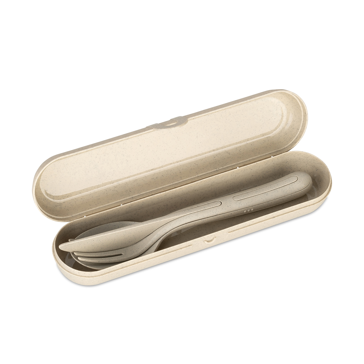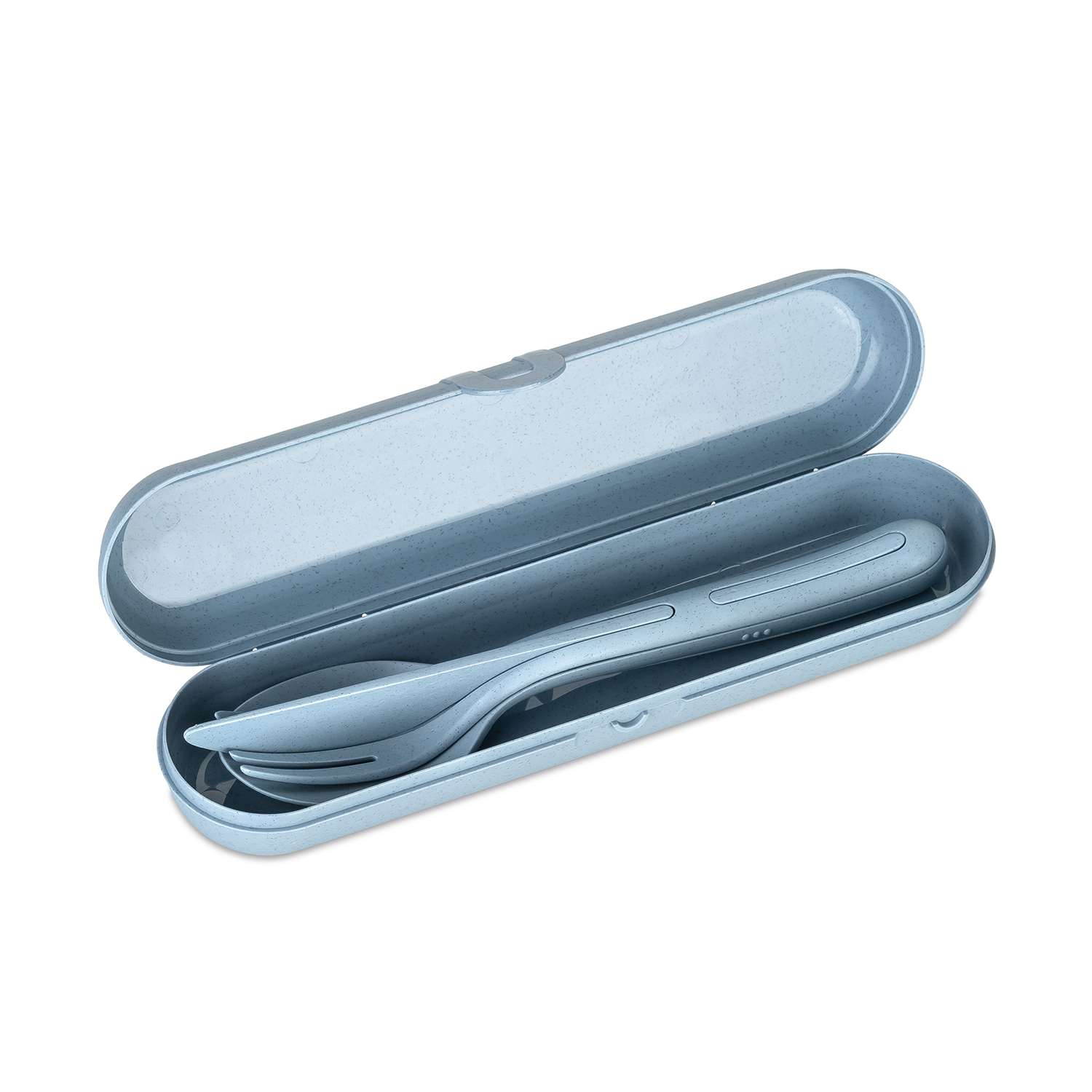 KLIKK POCKET READY besteht aus einem dreiteiligen Besteckset und einer schicken Box, mit der sich Messer, Gabel und Löffel sicher und sauber von A nach B transportieren lassen. Auch nach der Mahlzeit sind hier alle Besteckteile hygienisch verstaut. Die schlanke Box hat einen praktischen Clipverschluss und findet in jeder Tasche Platz.