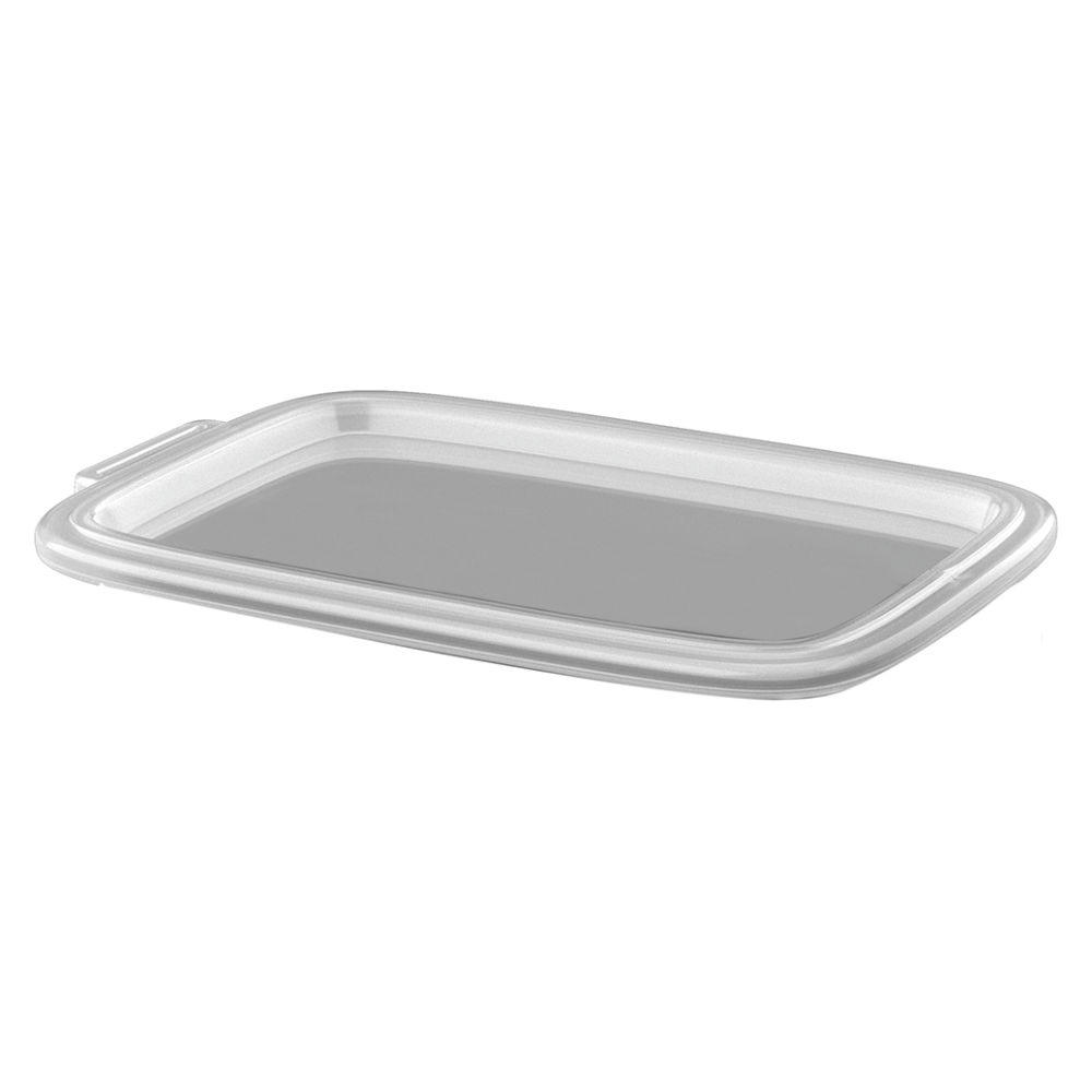 Der Deckel verschließt die MOVE BOX absolut dicht und macht sie auslaufsicher. Dreht man ihn um, fungiert er als perfekte Abdeckhaube für die Mikrowelle. Der hochgezogene Rand verhindert zuverlässig ein Verrutschen der Boxen beim Transport, gleichzeitig ist er so raffiniert gestaltet, dass das Spülwasser problemlos ablaufen kann. Am Deckelrand befindet sich eine integrierte Lasche zur schnellen Etikettierung.