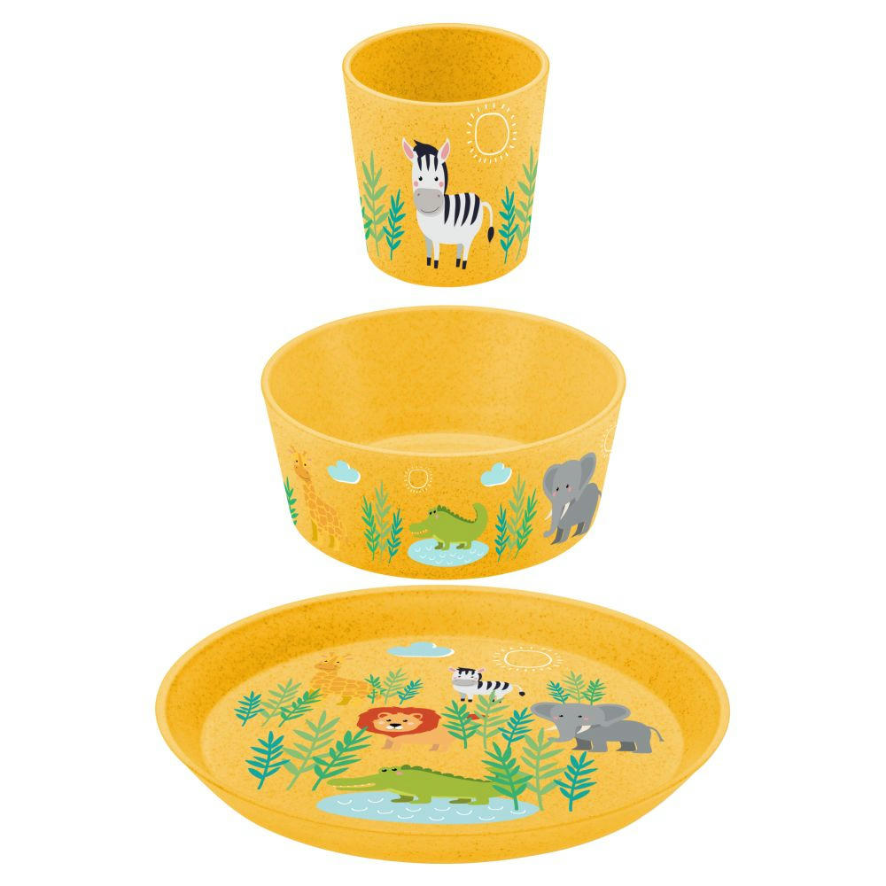 KOZIOL Kleiner Teller + Schale + Becher Kindermotiv Africa "Connect", biozirkulär