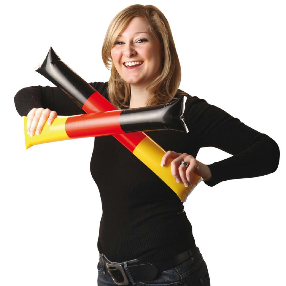 Zwei aufblasbare Schläuche mit selbstschließendem Ventil-Mechanismus gegen das Entweichen von Luft. Zum Aufblasen und Auslassen dient ein beigelegter Strohhalm.