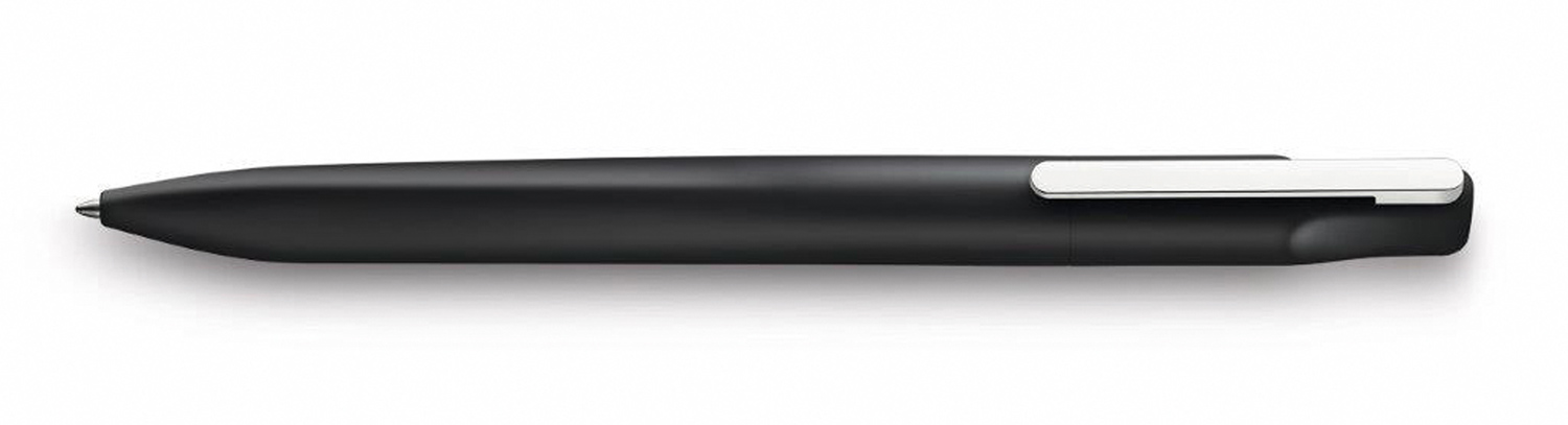 Kunststoffgehäuse mit matter Oberfläche mit Metallclip. Farben: lightgrey oder schwarz. Mit LAMY Großraummine M16 blau M. Standardverpackung V0.