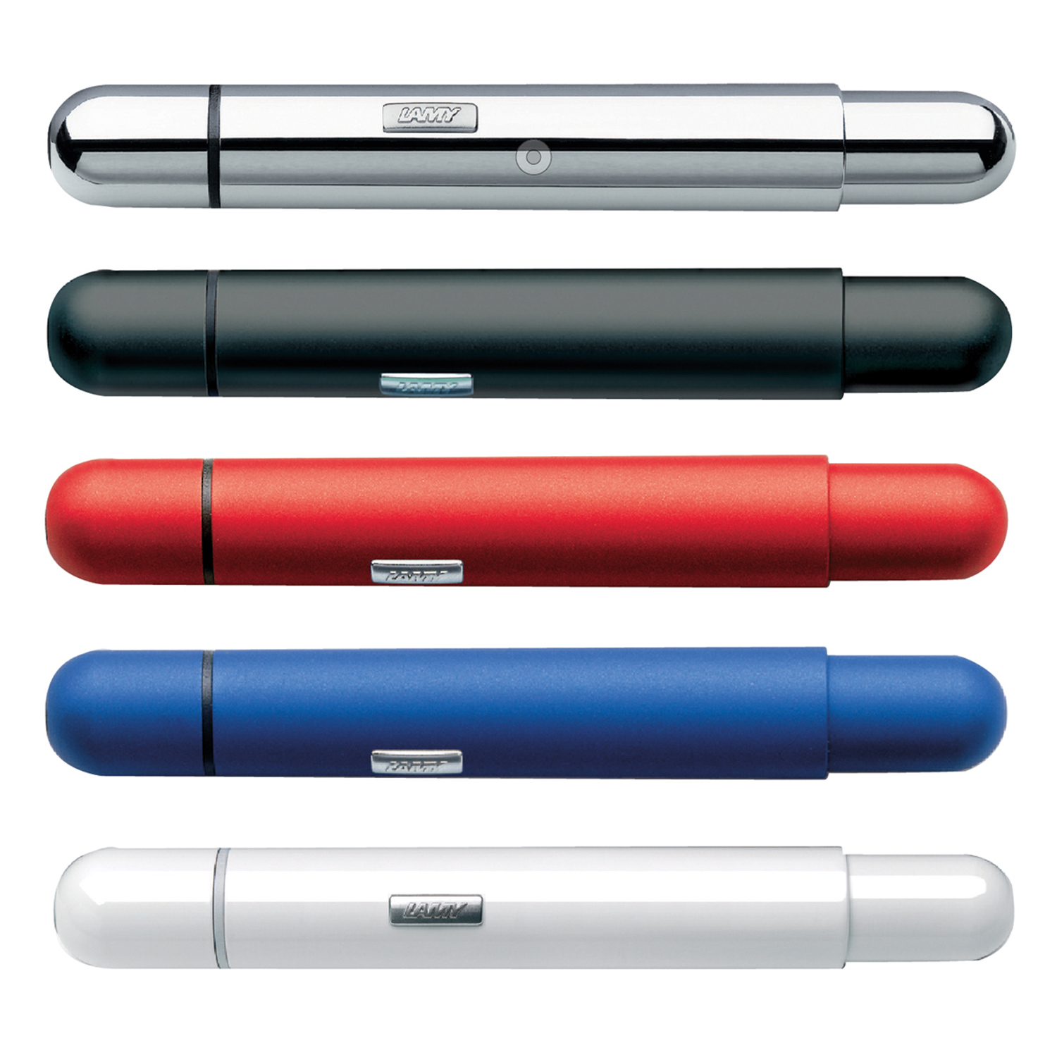 Metallkugelschreiber mit Druckmechanik, kurz im Taschenformat – lang im Schreibformat. Mit Compact-Kugelschreibermine M 22, schwarz. Standardverpackung: E 113. Farbe: glanzchrom, weiß, neon orange, neon pink, blau, schwarz.