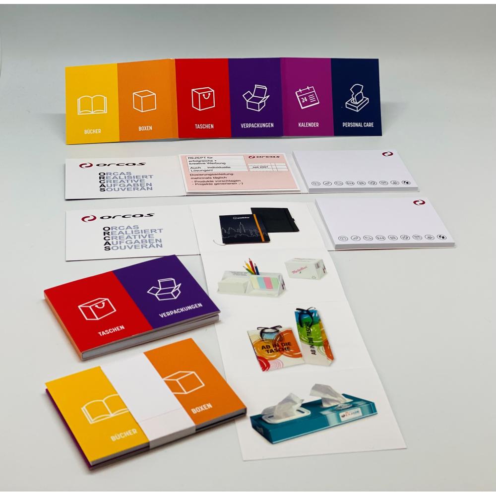Kartoncover-Leporello seitlich zu öffnen, mit Haftnotizen + Leaflet.Haftnotizen innen rechts mit 50 Blatt 10 x7,5 cm, weiß, 80g und 2-farbigem Druck, einseitig. Leaflet gefaltet mit 7 Druckflächen à 10 x 7,5 cm, Bilderdruckpapier 130g und 4-farbigem Druck, beidseitig. Kartoncover mit 4-farbigem Druck. Einzeln mit Banderole verschlossen.