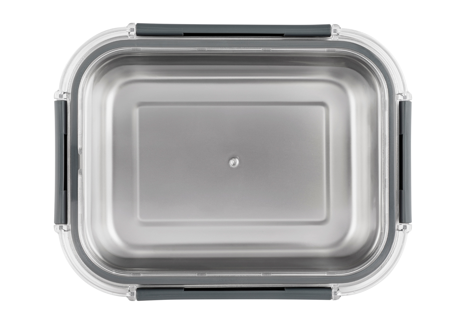 Die Lunchbox aus lebensmittelechtem Edelstahl bietet Eleganz und Funktionalität. Geeignet für die Mikrowelle (max. 700 Watt), den Gefrierschrank (bis -20°), den Backofen (bis 200°) und auslaufsicher, ist sie ideal für unterwegs. Kraftpapierbanderole.