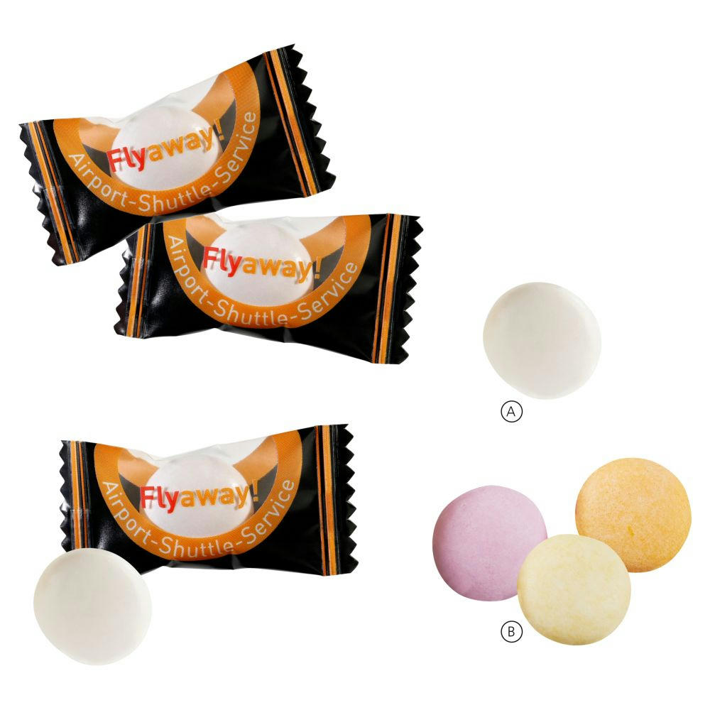 MENTOS in glänzend- oder matt-kaschiertem transparenten (alternativ weißen) Flowpack einzeln verpackt. Geschmack: Classic Mint oder Classic Fruit Mix (Erdbeere, Orange, Zitrone). Inhalt: 1 St. à ca. 2,8 g. Haltbarkeit: ca. 18 Monate.