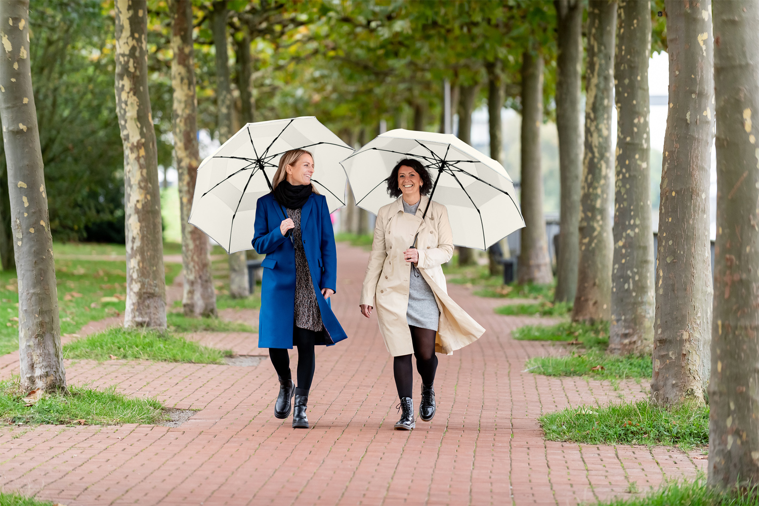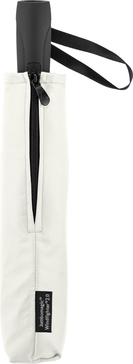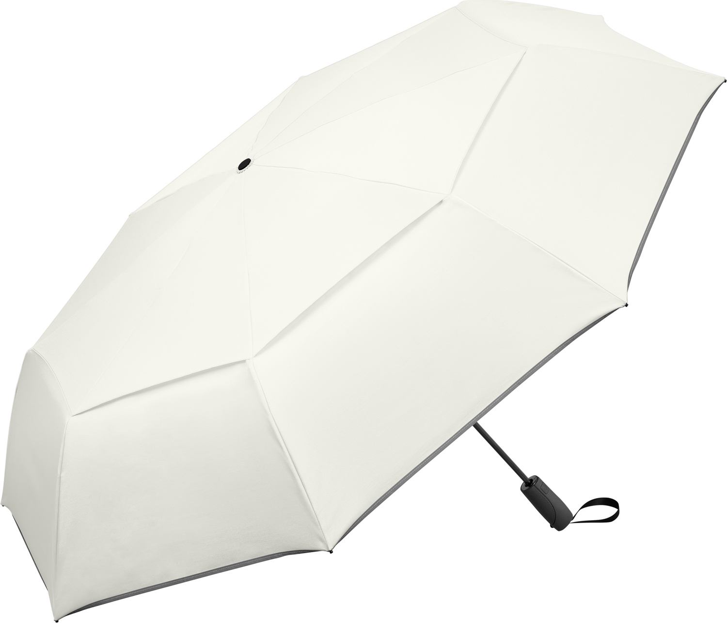 Filigraner Handöffner-Taschenschirm in ultraleichter Ausführung. Einfache Handhabung durch Sicherheitsschieber, hochwertiges Windproof-PLUS-System für eine maximale Gestell-Flexibilität bei stärkeren Windböen, schwarzer Aluminiumstock, Polyester-Pongee Bezugsmaterial aus recycelten Kunststoffen, extra leichter Bezug, matt-schwarzer Kunststoffgriff mit Werbeanbringungsmöglichkeit, handtaschentauglich durch ultraleichtes Gewicht und kompakte Größe