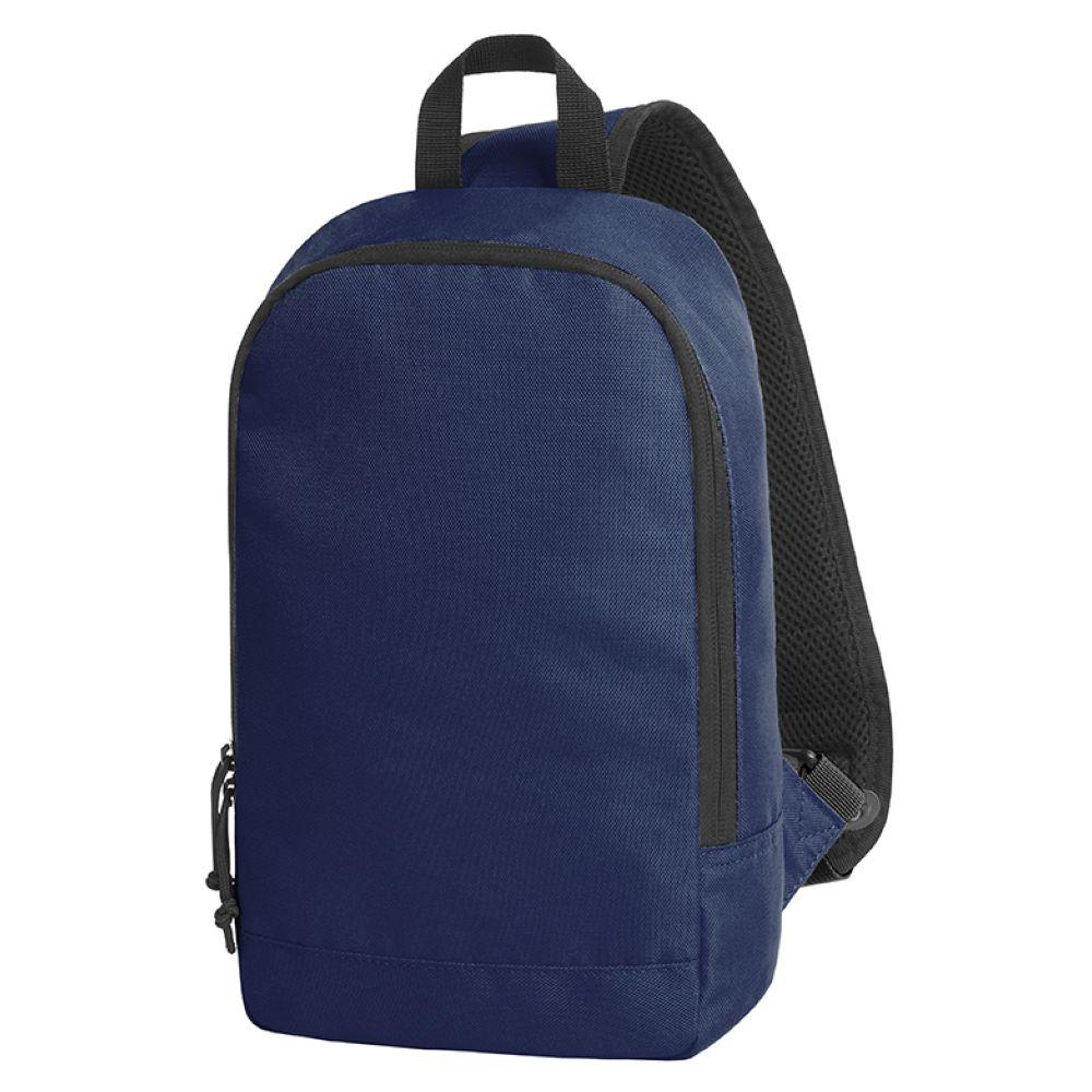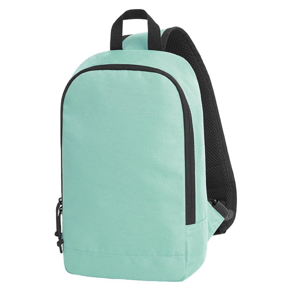 moderner Monostrap-Rucksack; Hauptfach mit 2-Wege-Reißverschluss; flaches Einsteckfach innen; rückseitiges Reißverschlussfach; gepolsterter, längenverstellbarer und beidseitig tragbarer Schultergurt; Trageschlaufe