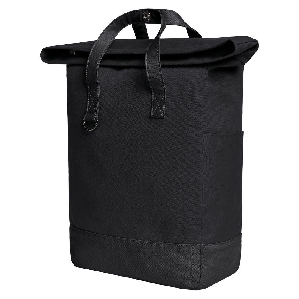 moderner, aufwändig verarbeiteter Überschlag-Rucksack; liebevoll gestaltet mit wertigen Metall-Accessoires und beschichteten Baumwoll-Besätzen; Überschlag-Fixierung mit eingearbeitetem Magnetverschluss; großes Reißverschluss-Hauptfach; Reißverschluss-Innentasche; gepolstertes Notebookfach; zwei flache Einsteckfächer seitlich; vor Zugriff geschütztes, rückseitiges Reißverschluss-Einsteckfach; Handgriffe mit Druckknopf; gepolsterte, längenverstellbare Schultergurte mit elastischer Fixierung für Gurtband