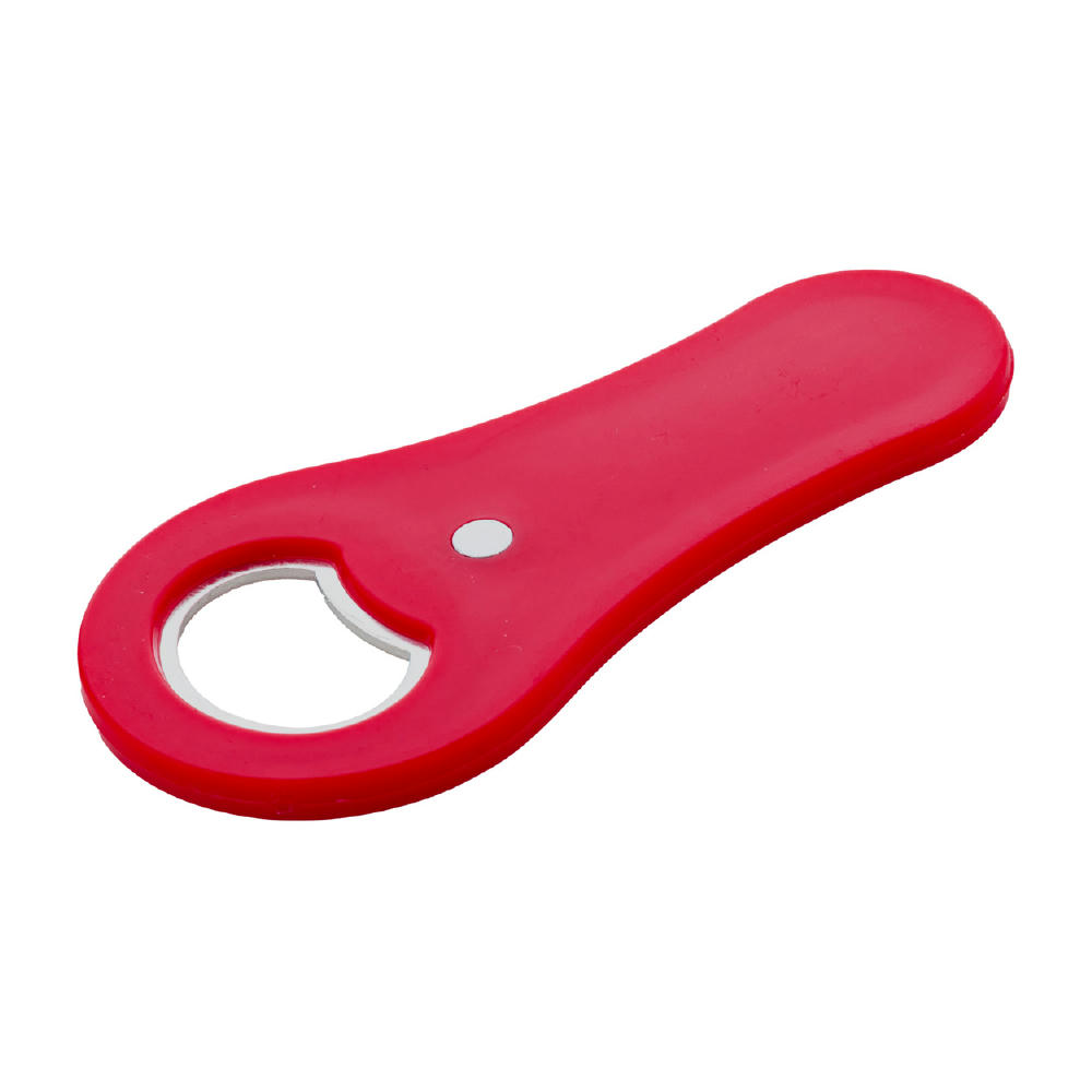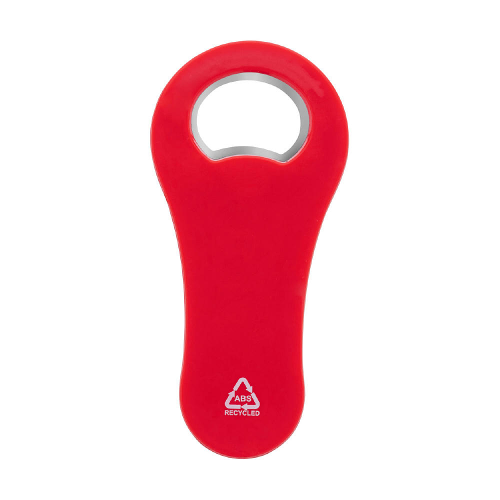 Flaschenöffner aus recyceltem ABS-Kunststoff mit Kühlschrankmagnet.