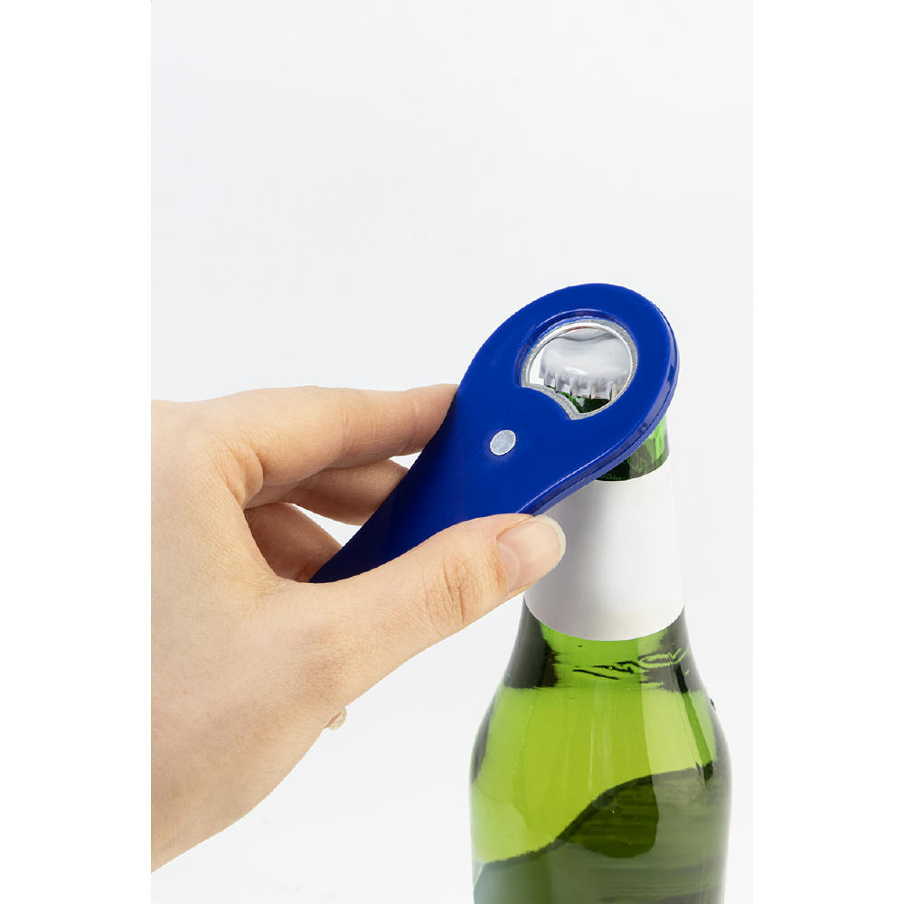 Flaschenöffner aus recyceltem ABS-Kunststoff mit Kühlschrankmagnet.