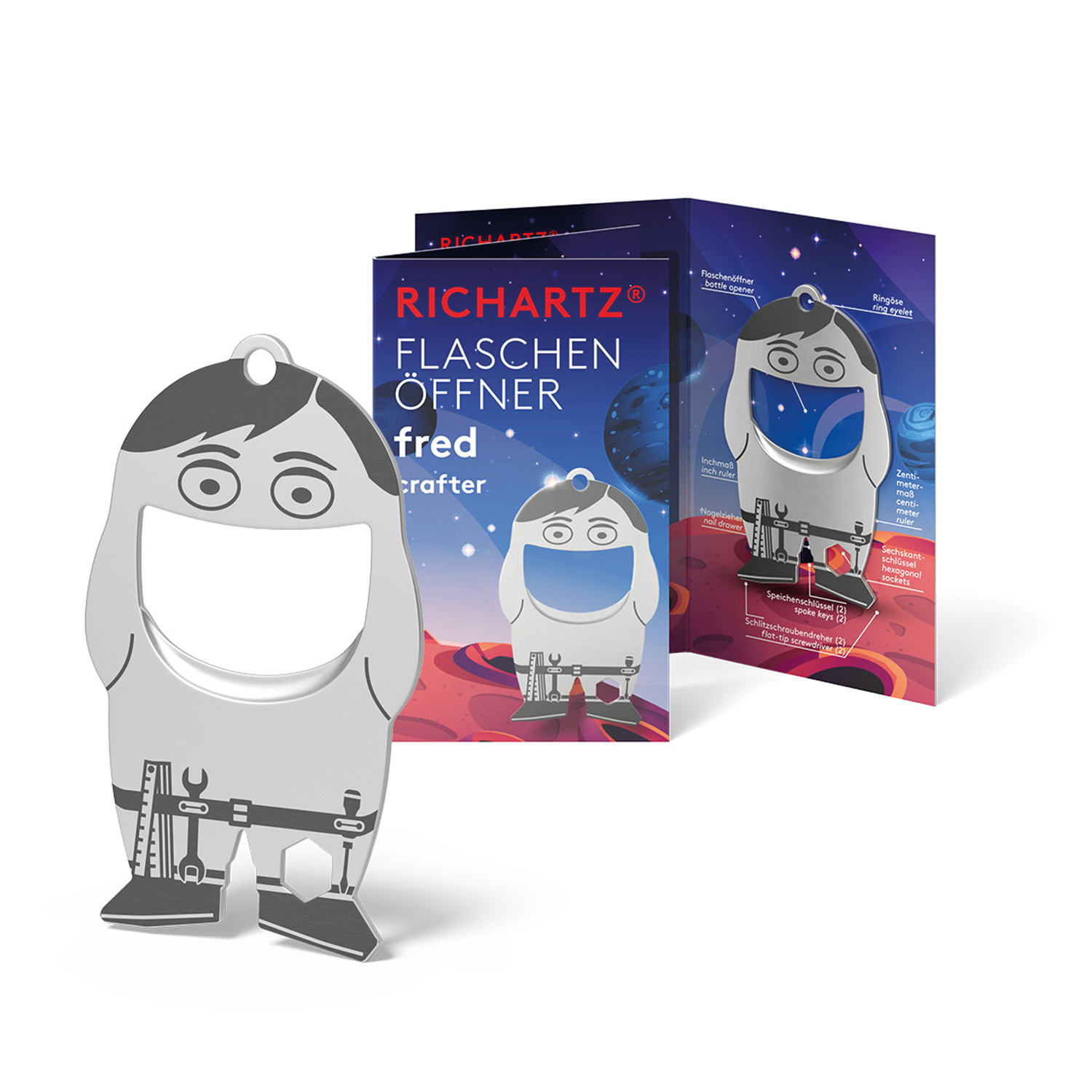 Der sympathische Flaschenöffner überzeugt durch seine schöne, kompakte Form und passt daher an jeden Schlüsselbund. Sein perfekt konstruierter Flaschenöffner löst problemlos jeden Kronkorken und mit 9 weiteren nützlichen Funktionen wird er schnell zum unverzichtbaren Begleiter im Alltag. FLASCHENÖFFNER von RICHARTZ®: So praktisch und immer dabei!