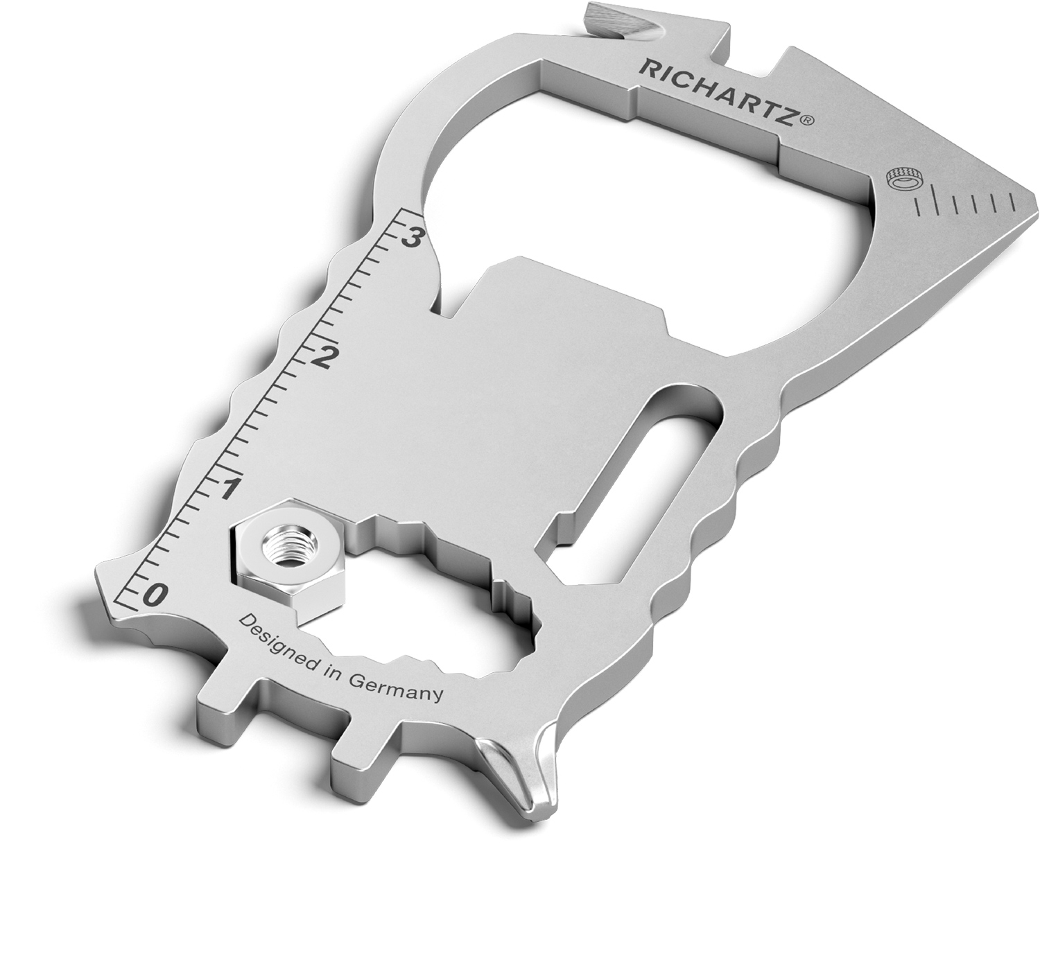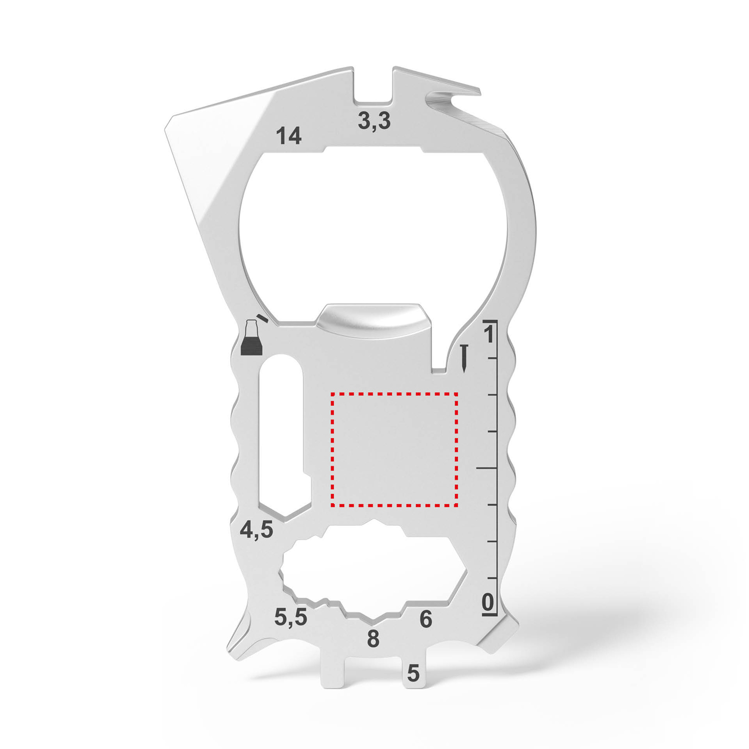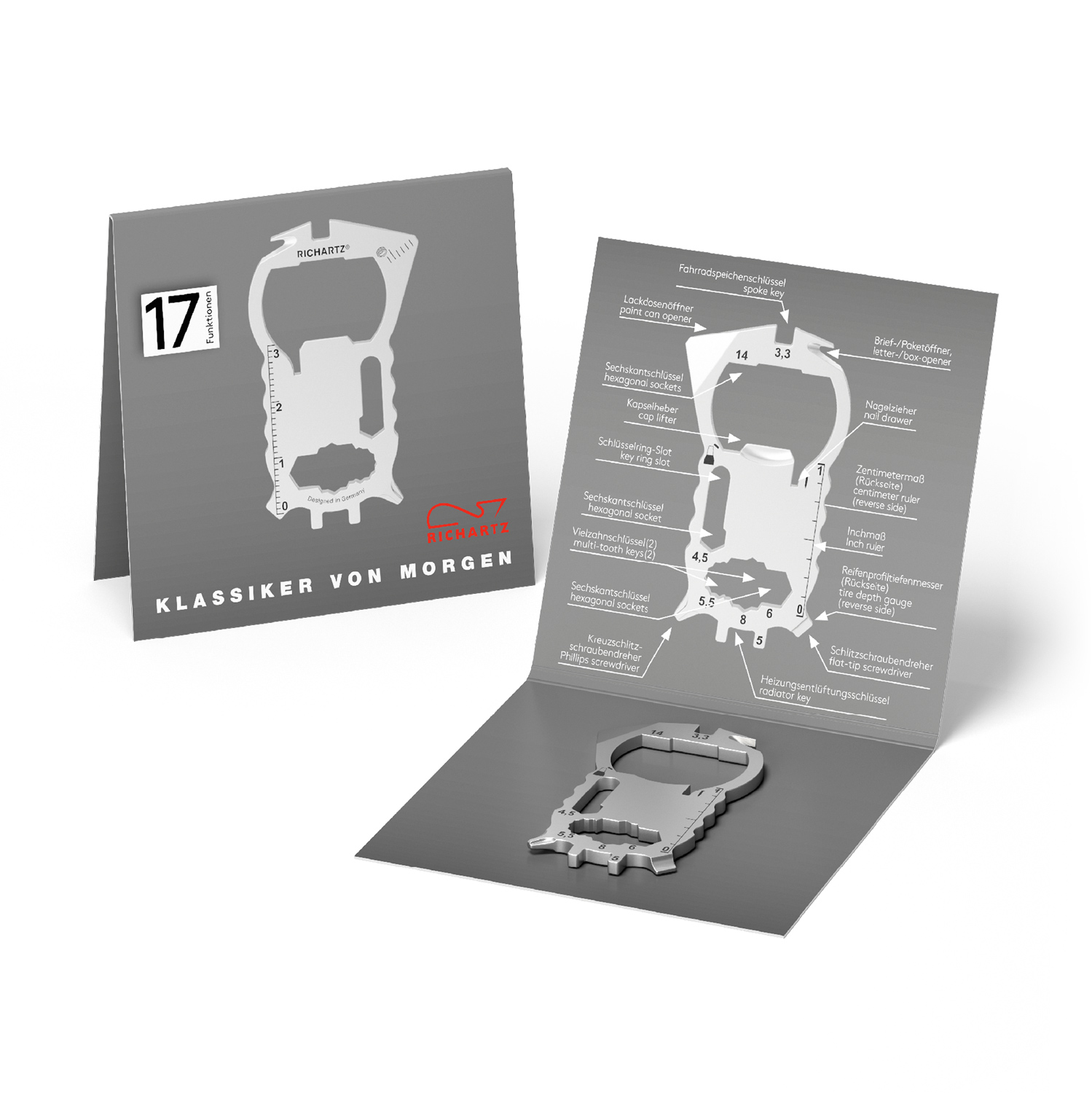 Kleines, kompaktes Multitool mit 17 Funktionen , aus hochwertigem, matt gestrahltem Edelstahl gefertigt. Passt an jeden Schlüsselbund! Inkl. Lasergravur und individuell gestalteter Verpackung.
