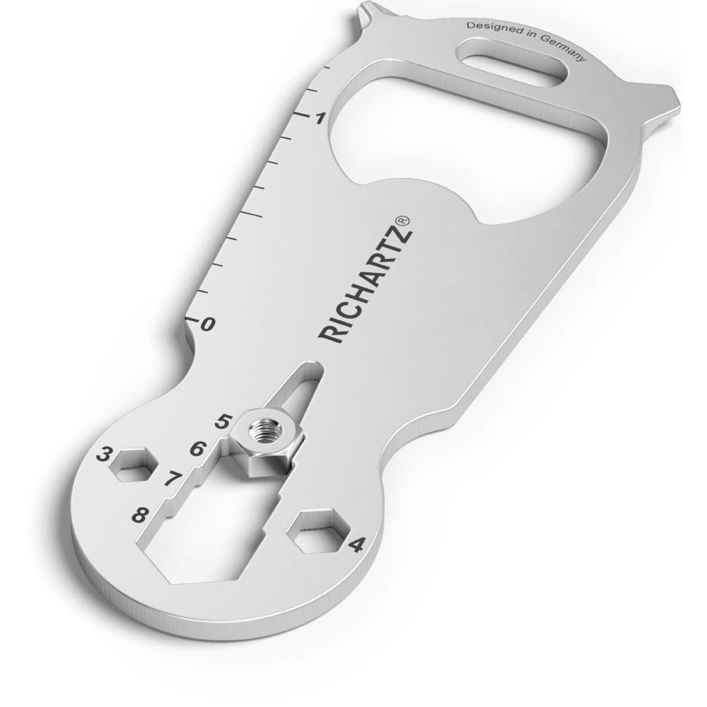 Das kompakte Multifunktionstool ist ein unentbehrlicher Begleiter und passt an jeden Schlüsselbund! 14 Funktionen: praktischer Einkaufswagenlöser, Kapselheber, zwei Schlitzschraubendreher, Kreuzschraubendreher, sechs Sechskantschlüssel, Zentimetermaß, Inchmaß, Nagelzieher.