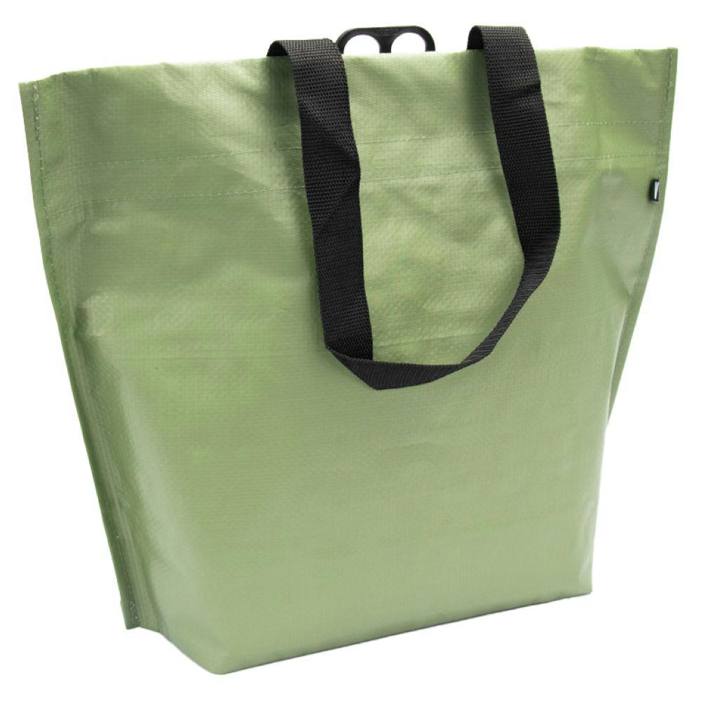 Eine kompakte, robuste Shopper-Tasche (± 30 l), die mit Fahrradhaken