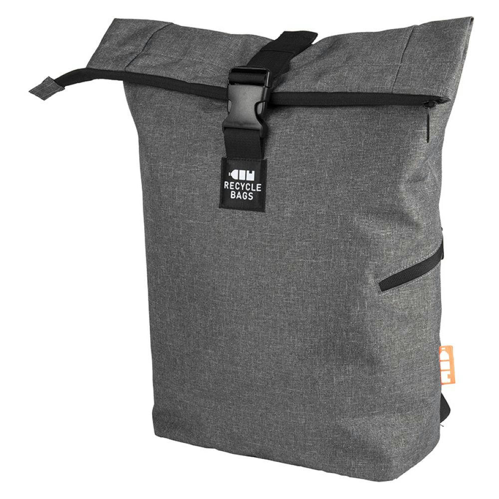 Der RB Rucksack ist ein stilvoller und praktischer Rucksack mit einem einfachen Rolltop-Verschluss. Die große Öffnung ermöglicht es Ihnen, Dinge wie Bücher, Dokumente, (Sport-) Kleidung oder andere Dinge, die Sie unterwegs benötigen, schnell und einfach zu finden. Sie können Ihren Laptop oder Ihr Tablet in das spezielle Laptopfach stecken, dass durch die gepolsterte Rückwand geschützt ist. Kleinere Gegenstände können in der seitlichen Reißverschlusstasche aufbewahrt werden. Sowohl der hochwertige, zweifarbige Stoff, als auch das Futter, das Reißverschlussband und der gewebte Gurt werden aus recycelten PET-Flaschen hergestellt.