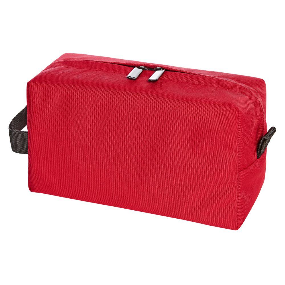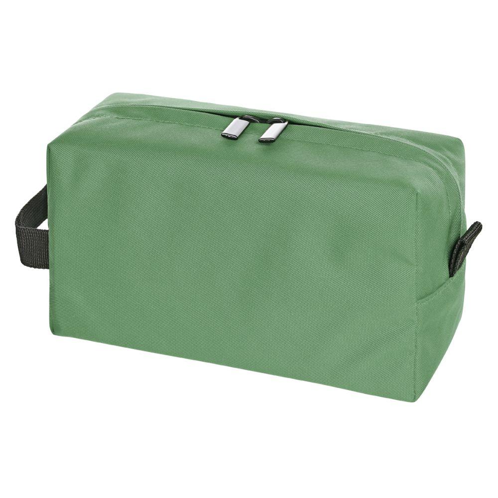 praktische rechteckige Reißverschlusstasche für viele Einsatzbereiche; RPET-Obermaterial; großes 2-Wege-Reißverschluss Hauptfach; Netzfach innen; seitliche Grifflaschen zum leichten Öffnen; Handgriff