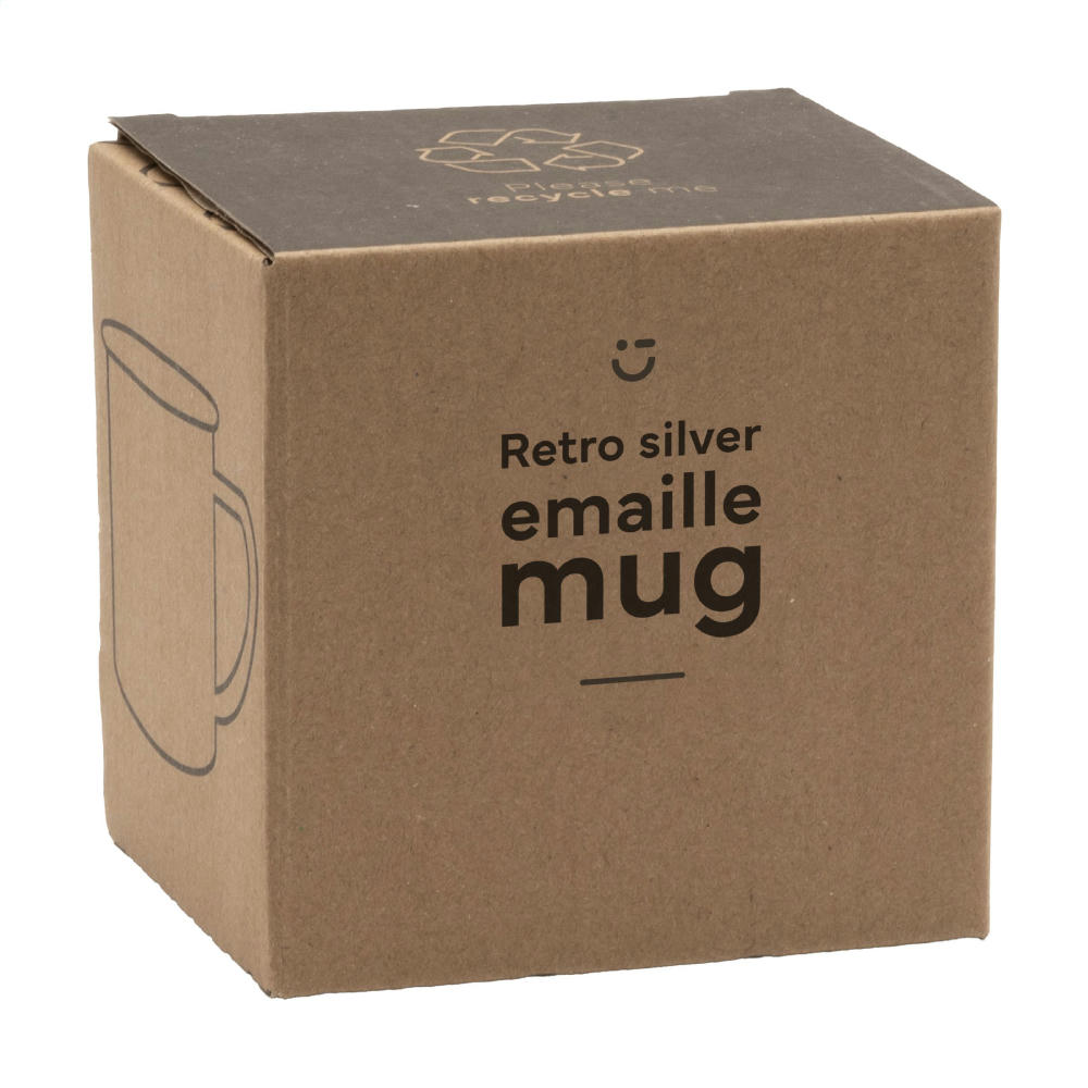 Emaillierter Becher im beliebten Retrostil. Schön verarbeitet mit einem Chromrand. Um den Retrooptik zu betonen, hat die Tasse Unvollkommenheiten. Nicht spülmaschinengeeignet. Fassungsvermögen 350 ml. Verpackt pro Stück.