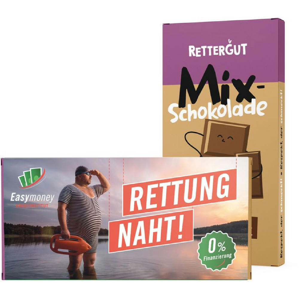 Rettergut Schokolade im Werbeschuber