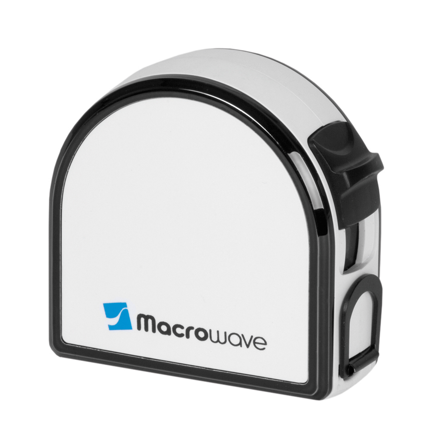 Bandmaß mit Durchmesserskala. Schlagfestes Gehäuse. Mit dyn. Bandrücklauf. Band: 3 m/13 mm, lackiert. Skalierung: cm, zweiseitig (Länge/Umfang, Durchmesser). Genauigkeit: EG -Klasse II . In schwarzer Geschenkverpackung.