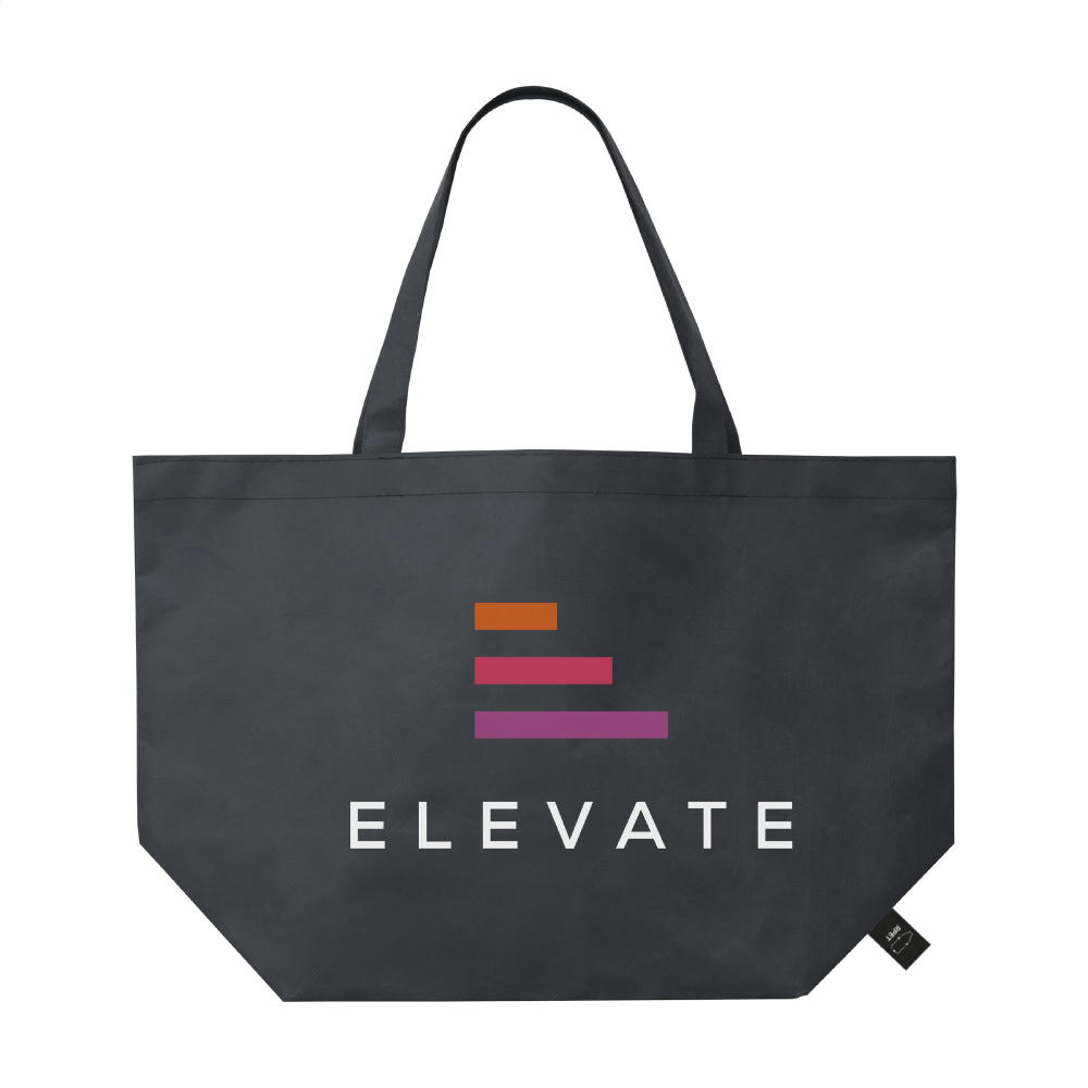 Großzügige RPET-Vlies-Einkaufs- und Strandtasche (80 g/m²), hergestellt aus recycelten PET-Flaschen. Eine breite Tasche, sowohl stark als auch leicht, mit langen Griffen. GRS-zertifiziert. Recyceltes Material insgesamt: 98%. Fassungsvermögen ca. 25 Liter.