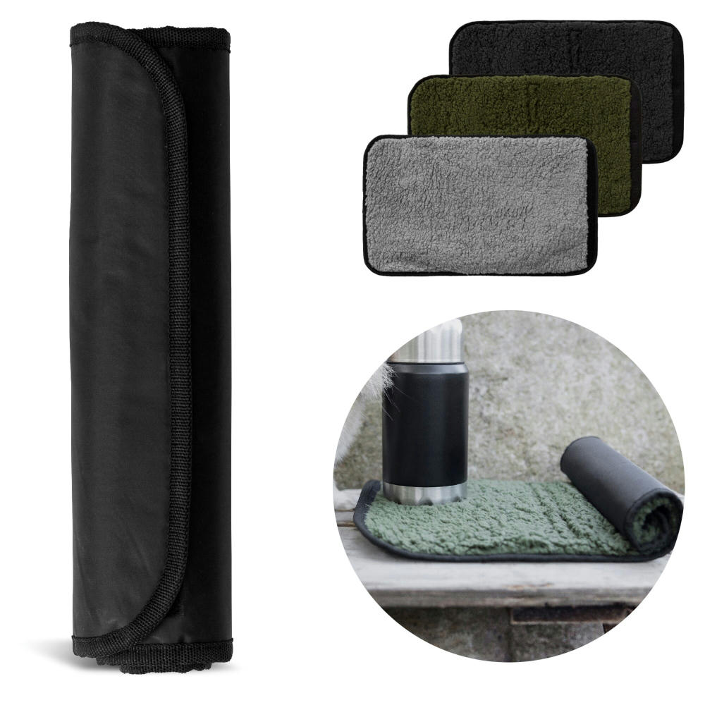 Kleine, praktische Sitzmatte mit wasserabweisender Rückseite und Klettverschluss, die sich leicht und platzsparend zusammenrollen lässt. Weiche, warme Vorderseite aus Lammfellimitat. Perfekt für einen Tag im Park oder am Strand.