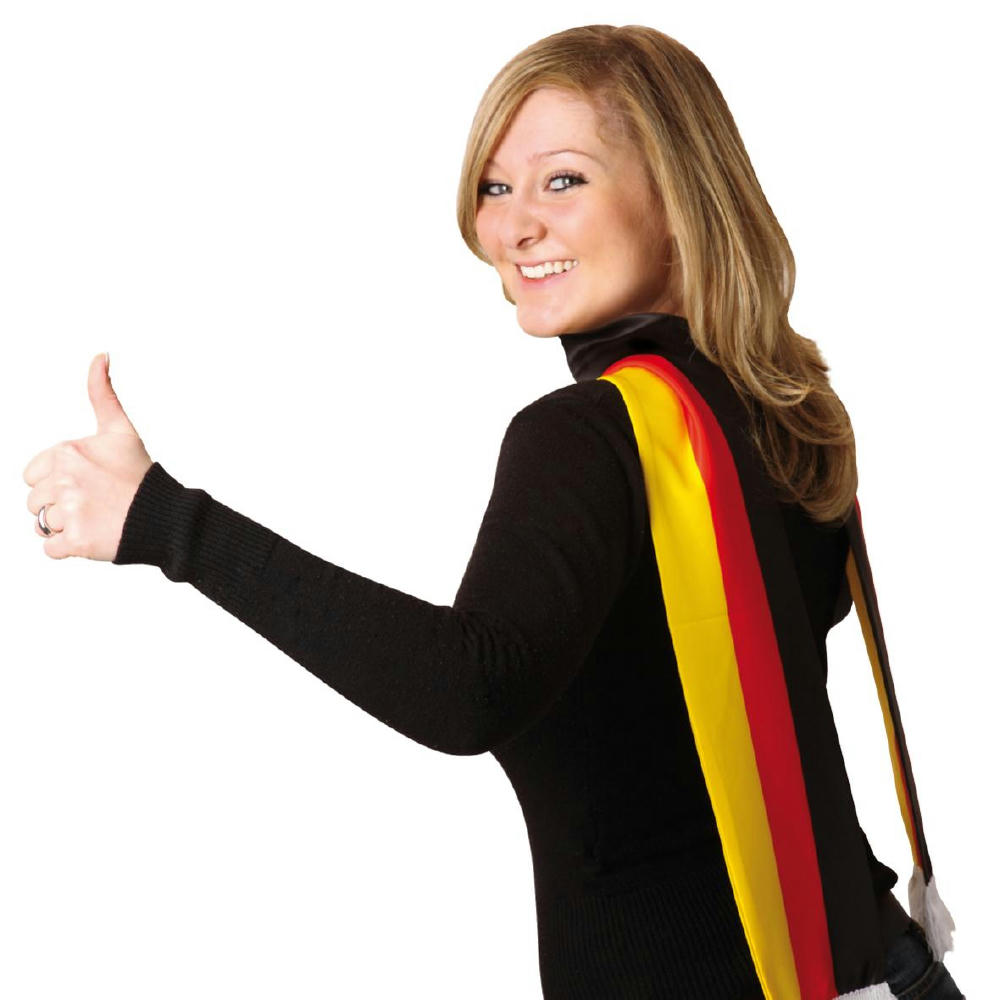 Kratzt garantiert nicht. Glatter, leichter Polyester-Schal im Länderdesign mit weißen Fransen.