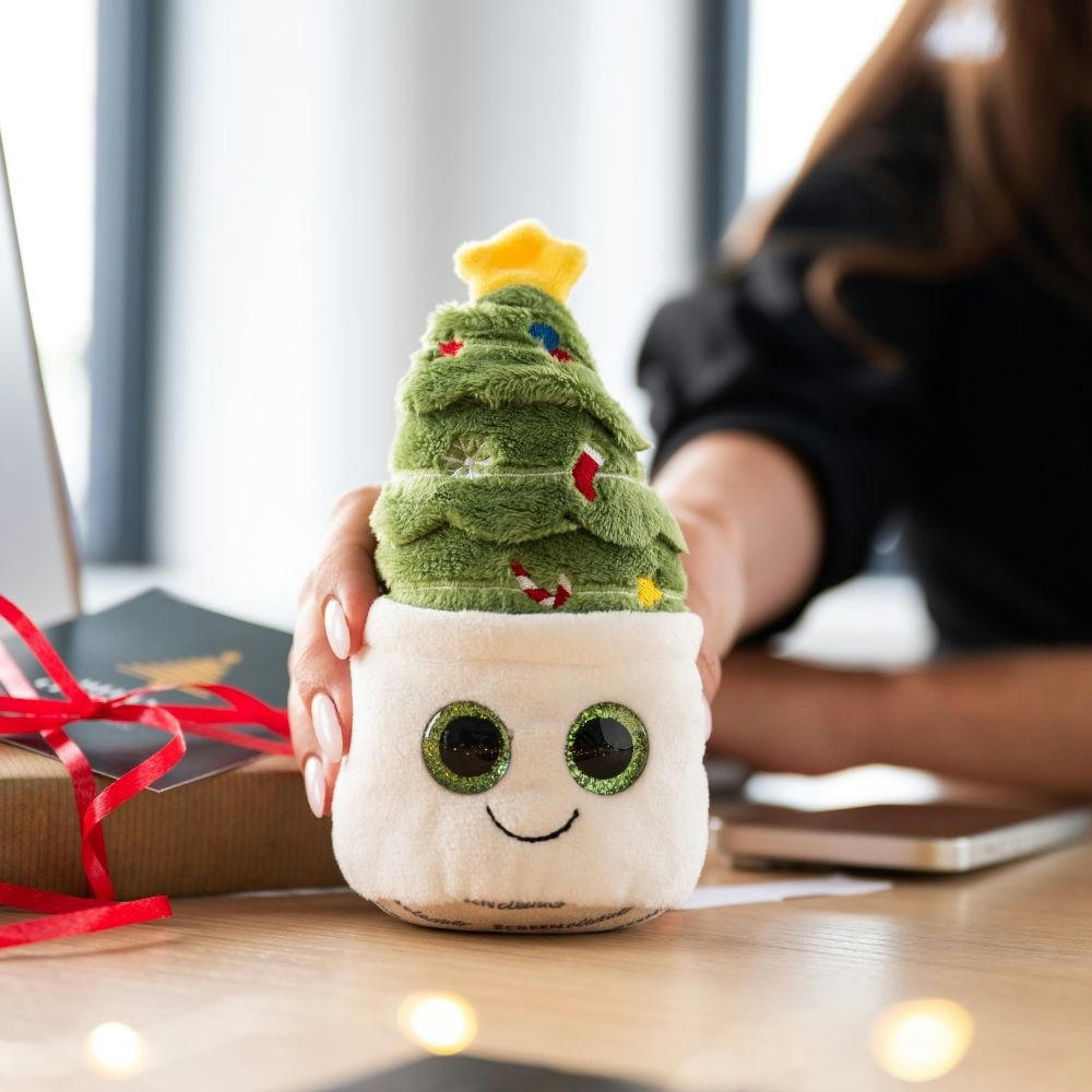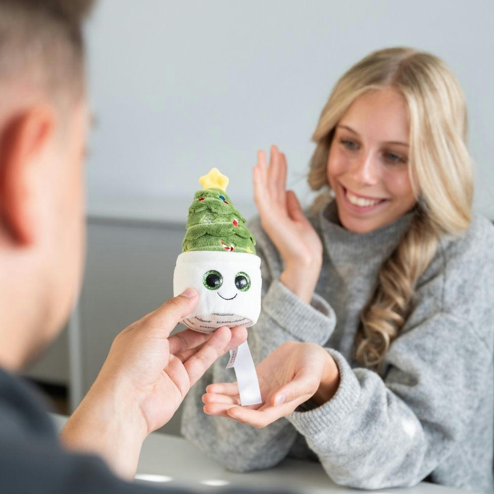 Der Tannenbaum aus der Evergreenies®-Serie bringt weihnachtliche Stimmung in Ihren (Büro-)Alltag. Mit seiner detailreichen Gestaltung ist er nicht nur ein stimmungsvoller Hingucker auf jedem Schreibtisch, sondern auch ein praktischer Reinigungshelfer – und das Beste: Er nadelt auch nach Wochen nicht und muss nicht gegossen werden. Die Mikrofaserunterseite sorgt für eine effektive Reinigung von glatten Oberflächen wie Bildschirmen, Smartphones oder Tablets. Mit einem Logo oder Spruch auf der Werbefahne ist die Pflanze ein perfekter Werbeträger mit Mehrwert, denn sie vereint Nützlichkeit mit Charme und einer Werbebotschaft. Ideal fürs Büro oder für Zuhause und macht den verwelkten Zimmerpflanzen charmant Konkurrenz." - -